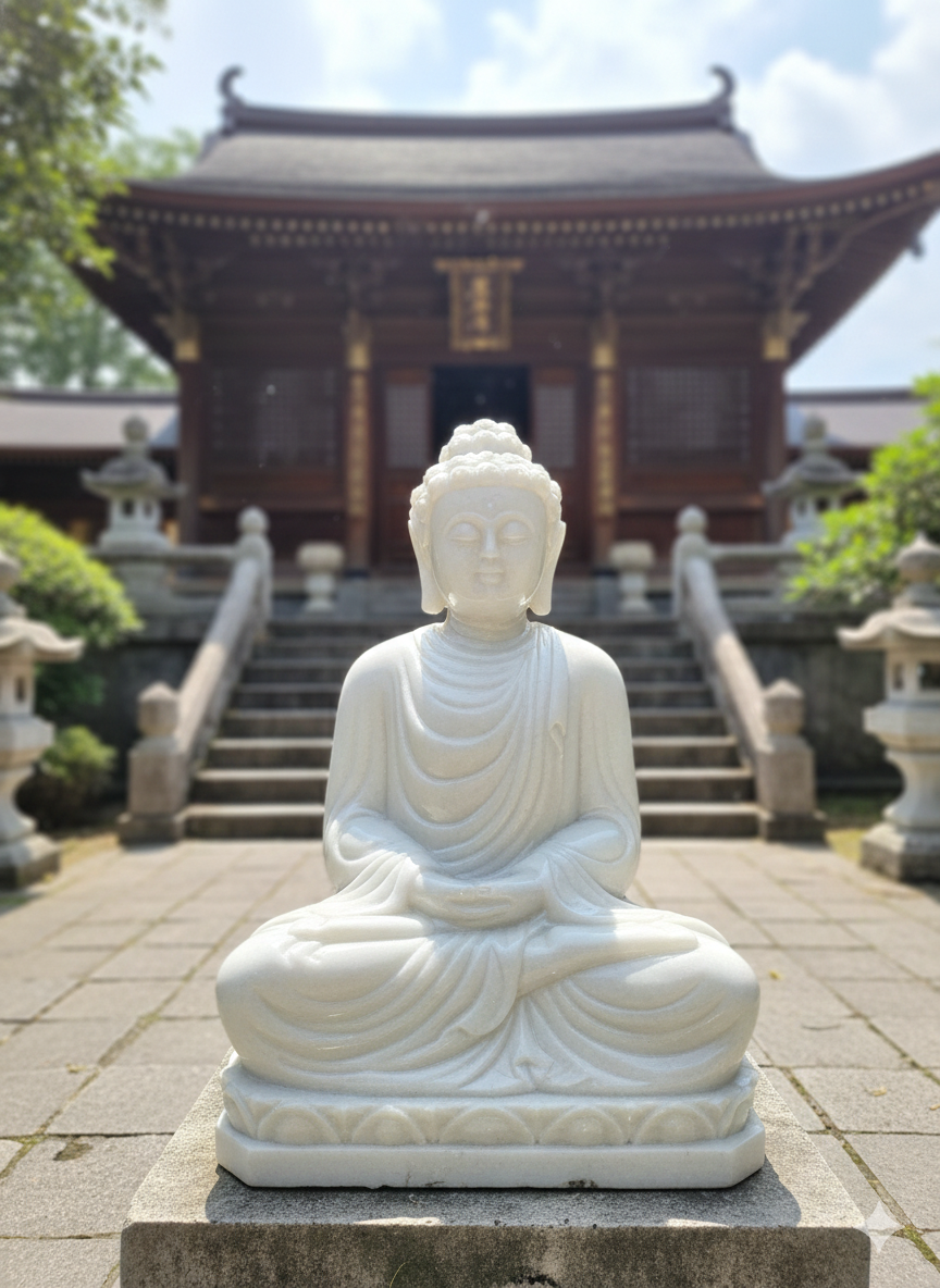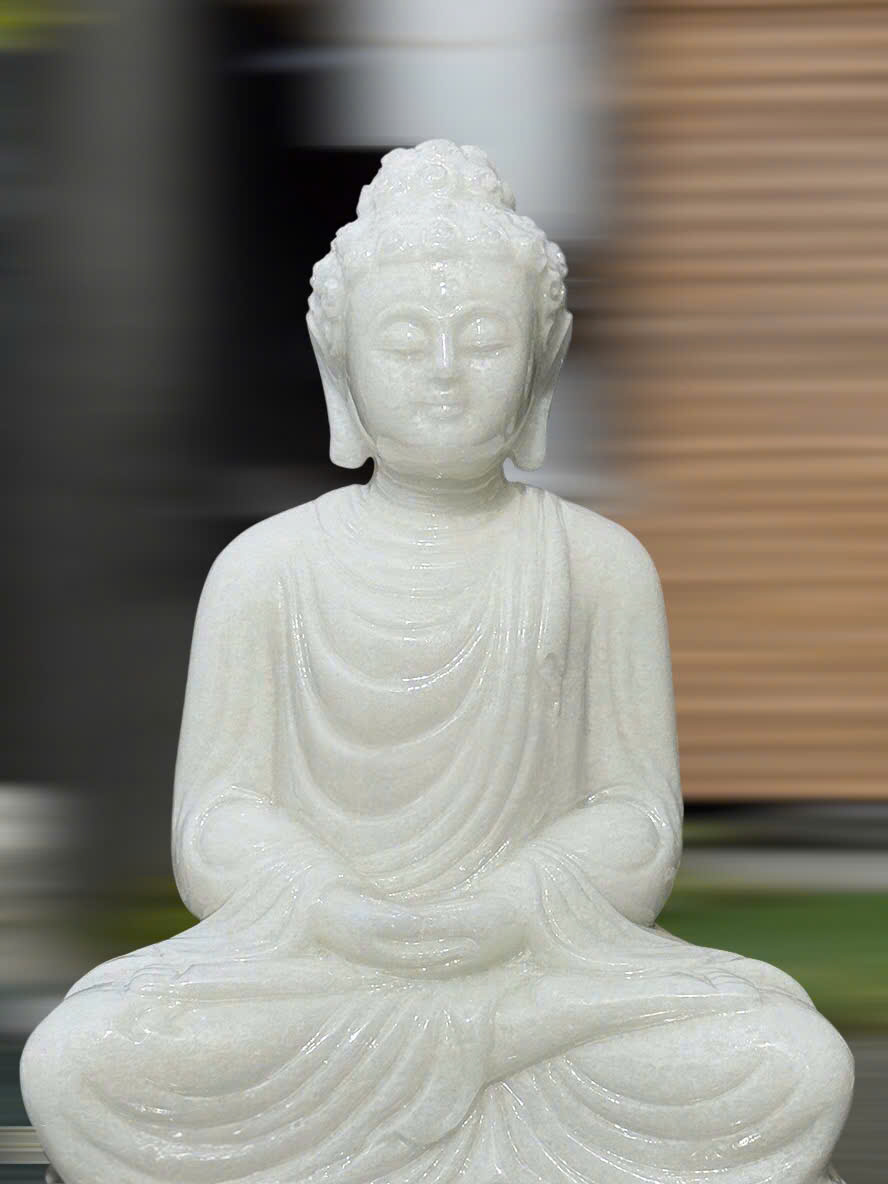 Tượng PhẬT THÍCH CA ngồi được chế tác tinh xảo từ đá trắng nguyên khối tự nhiên.biểu trưng cho sự thanh tịnh và giác ngộ. thể hiện thần thái từ bi, an nhiên và trí tuệ của Đức Phật
