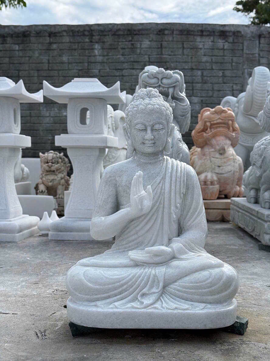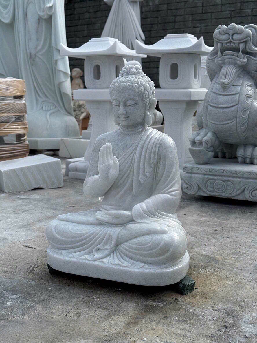 Tượng PhẬT THÍCH CA ngồi được chế tác tinh xảo từ đá trắng nguyên khối tự nhiên.biểu trưng cho sự thanh tịnh và giác ngộ. thể hiện thần thái từ bi, an nhiên và trí tuệ của Đức Phật