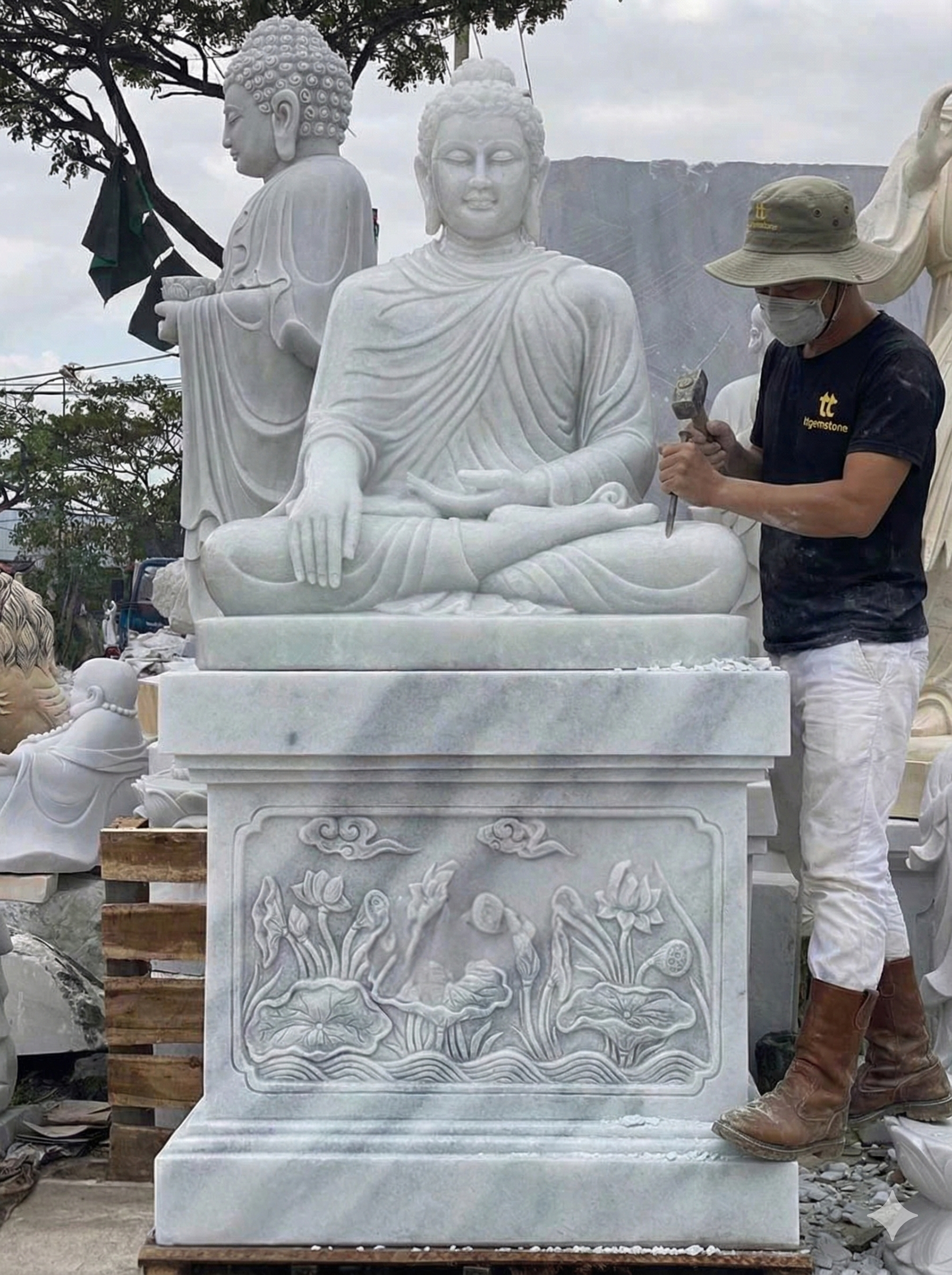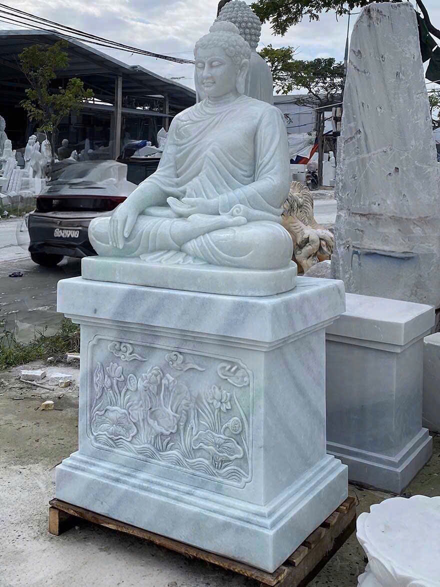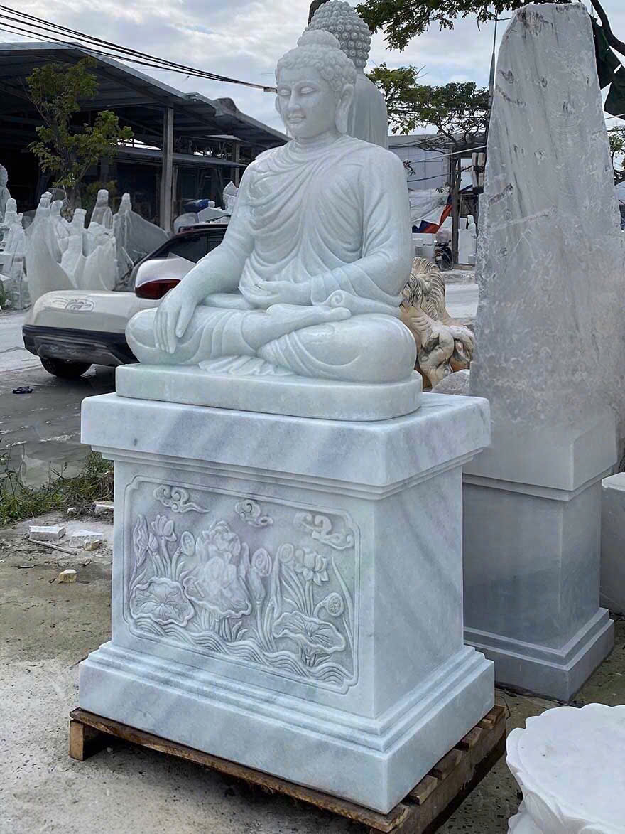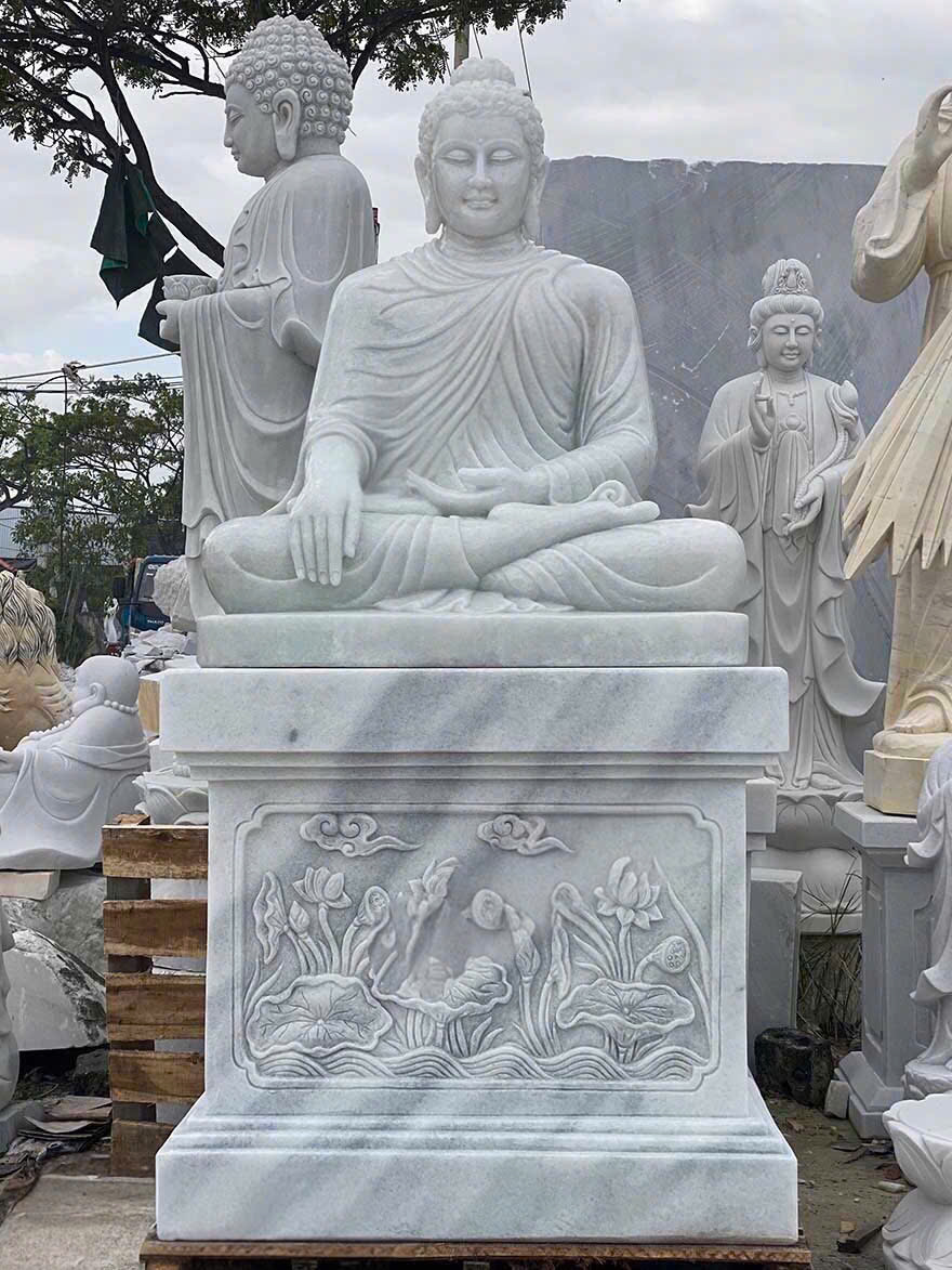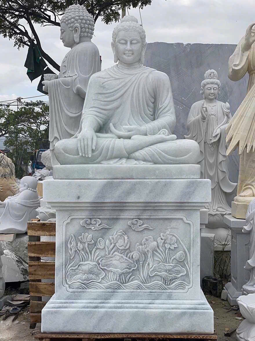 Tượng PhẬT THÍCH CA ngồi được chế tác tinh xảo từ đá trắng nguyên khối tự nhiên.biểu trưng cho sự thanh tịnh và giác ngộ. thể hiện thần thái từ bi, an nhiên và trí tuệ của Đức Phật
