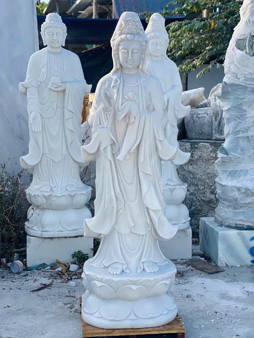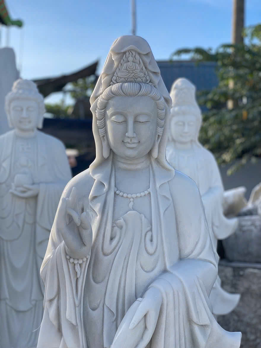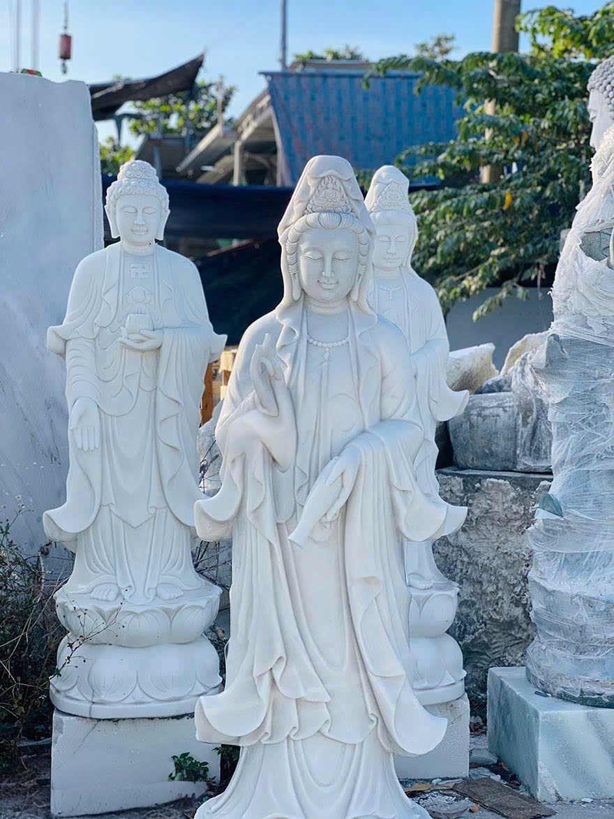 +Mang lại bình an và may mắn: Thờ tượng Phật Bà Quan Âm bằng đá trắng giúp gia đạo bình an, tránh được tà ma, xua tan hung khí và mang lại may mắn, tài lộc, sức khỏe.