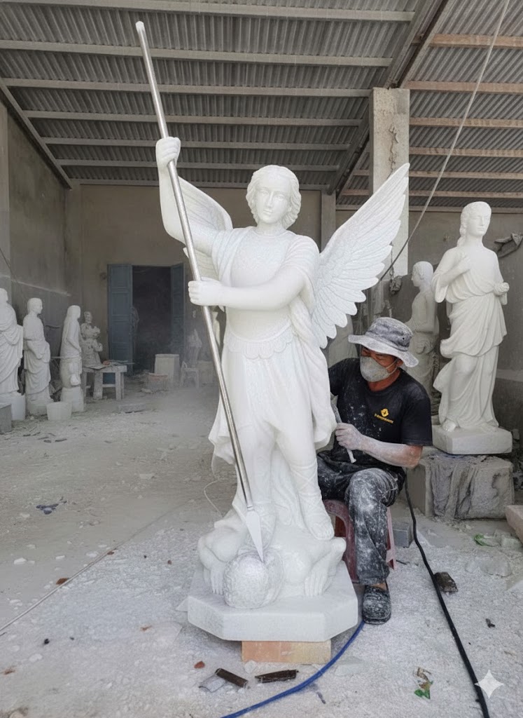 Trong phong thủy và nghệ thuật tôn giáo, tượng Michael thường được đặt ở cổng, sân hoặc nơi linh thiêng để bảo vệ không gian khỏi năng lượng xấu, tượng trưng cho người canh giữ bình an.
