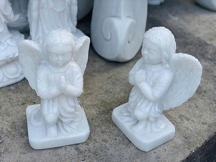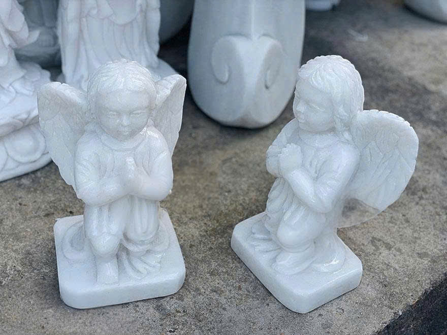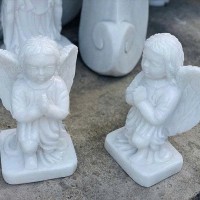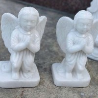 Cặp tượng thiên thần quỳ gối đá trắng cao 40cm T3604