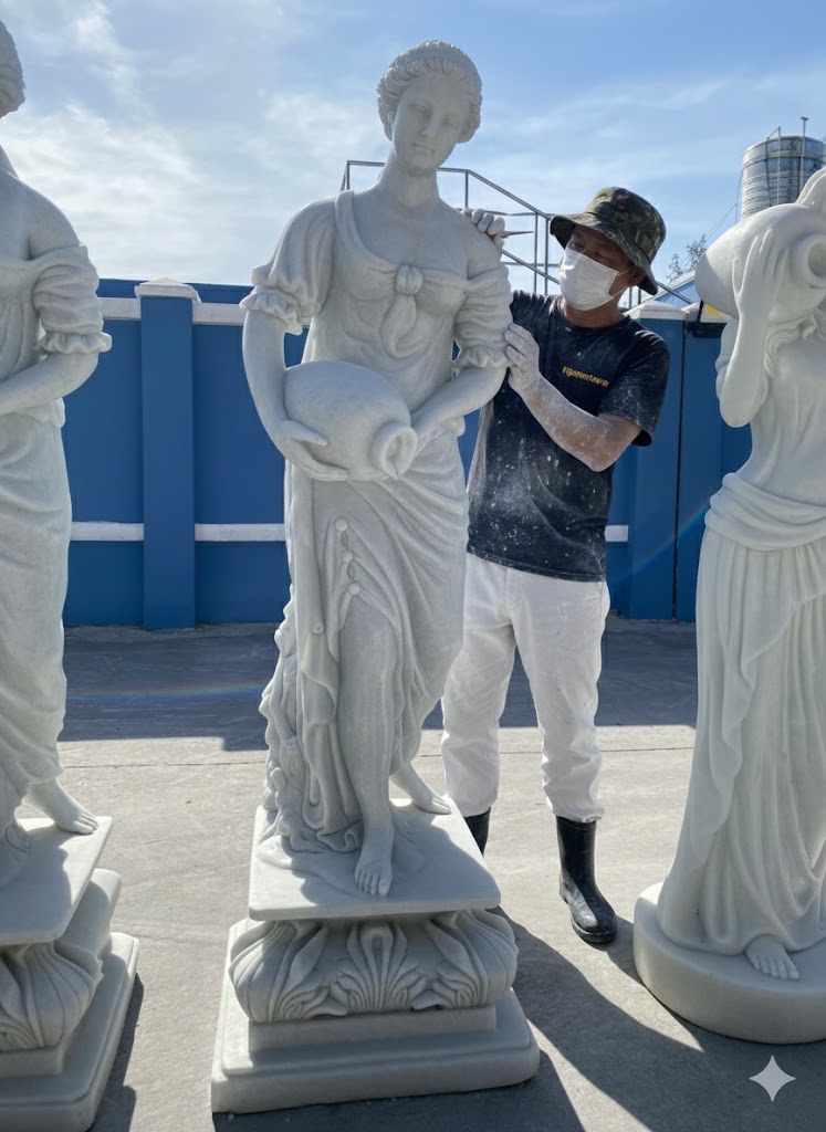 0 đánh giá cho Tượng thiếu nữ Hy Lạp cầm bình nước đá trắng nguyên khối Cao 1.7m ngang 40cm dài 42cm T3599