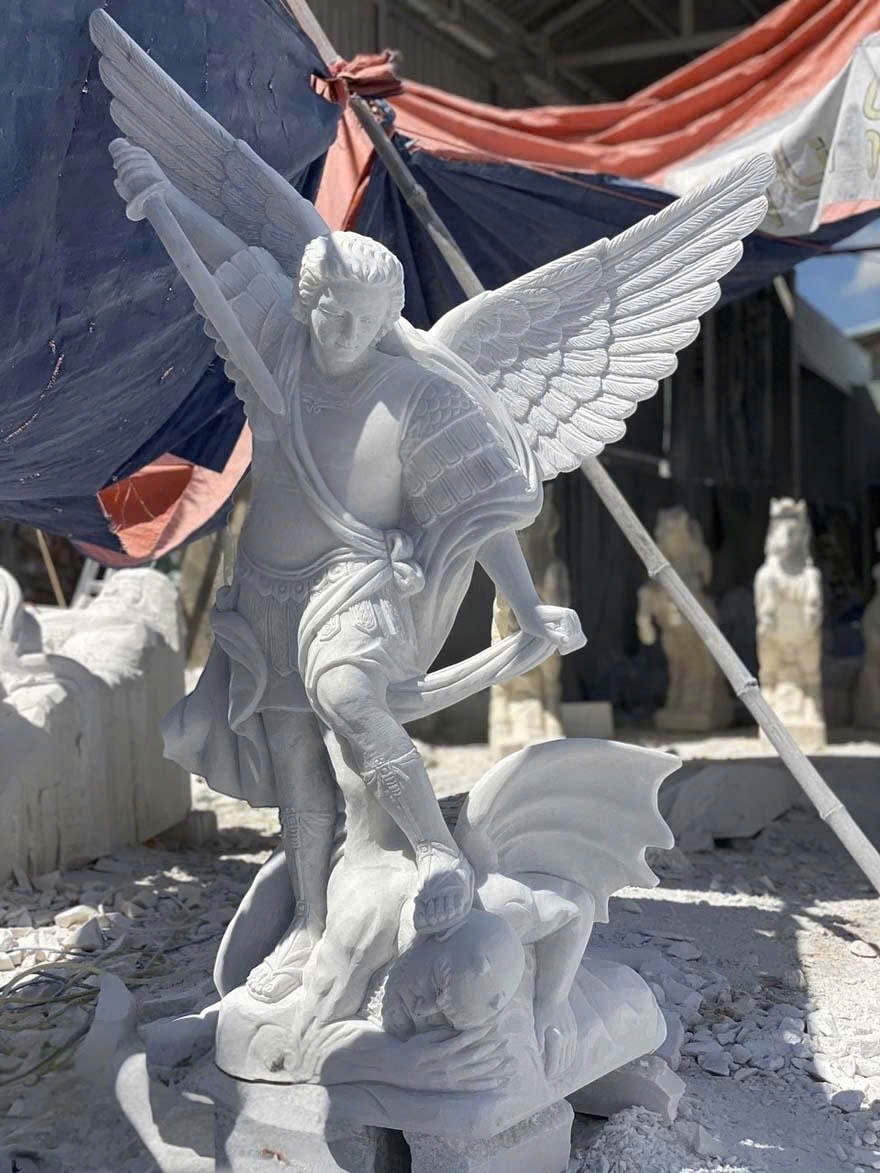 • Tượng Tổng Thiên Thần Michael đá trắng cao 1.5m T3616
