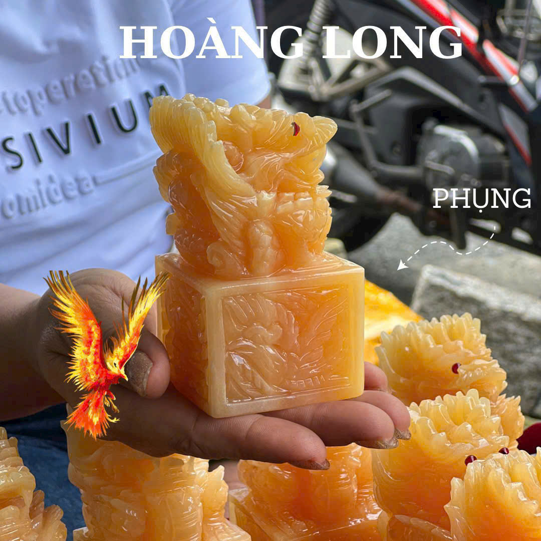 Ấn Rồng Đá Ngọc Hoàng Long là một trong những vật phẩm phong thủy được nhiều người yêu thích và tìm kiếm. Với hình tượng con rồng uy nghiêm, kết hợp với màu sắc vàng quý phái của đá Ngọc Hoàng Long, chiếc ấn này không chỉ mang vẻ đẹp thẩm mỹ mà còn ẩn chứa nhiều ý nghĩa sâu sắc về phong thủy.