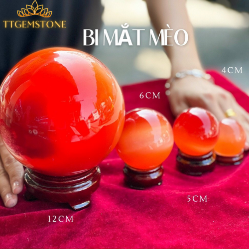 + Quả cầu phong thủy đá mắt mèo đỏ