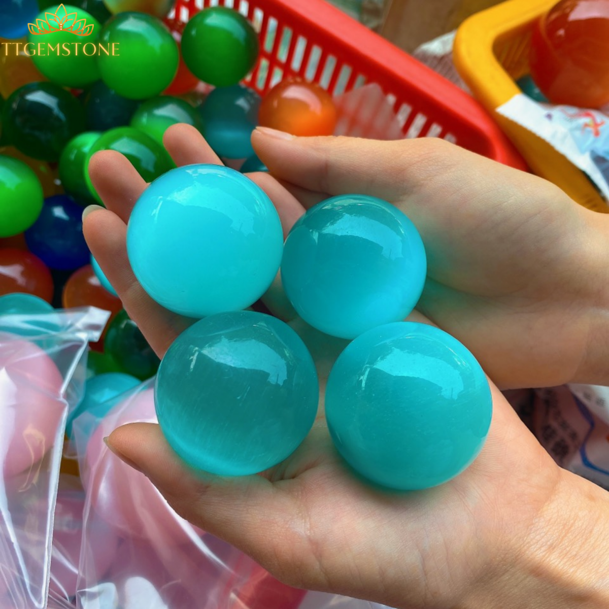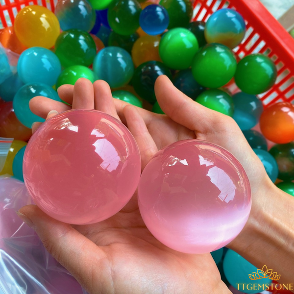 + Quả cầu phong thủy đá mắt mèo xanh lục