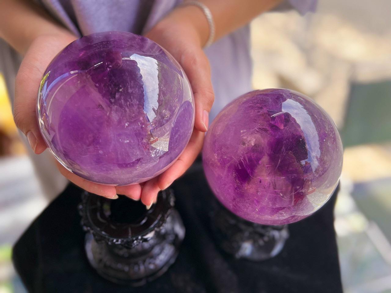 Chính nhờ màu sắc tuyệt đẹp cùng nguồn năng lượng dồi dào khiến quả cầu thạch anh tím được săn lùng trong suốt nhiều thời đại, cho tới nay vẫn không hề thay đổi. Những phiến đá thạch anh nằm sâu dưới mặt đất sau khi khai thác sẽ được mang về xưởng chế tác. Dưới bàn tay khéo léo của người thợ tài hoa đã tạo tác nên những viên cầu đá với bề mặt nhẵn nhịn, đầy đủ mọi kích thước.