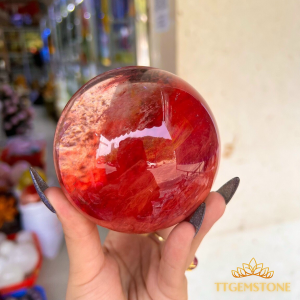 Đây cũng là vật phẩm trang trí có tính thẩm mỹ cao. Màu đỏ cùng các vân tự nhiên mang đến vẻ đẹp tuyệt vời. Với những người đang kinh doanh khi sở hữu quả cầu này sẽ giúp cho công việc thuận lợi, suôn sẻ, buôn may bán đắt.