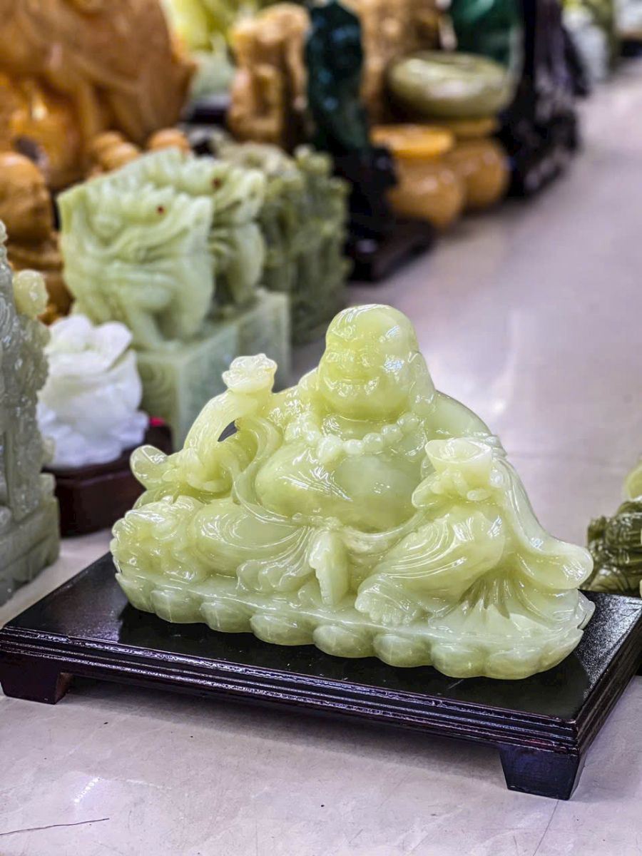 Giá trị phong thủy: Sắc xanh của đá Pakistan tượng trưng cho sự sinh sôi, nảy nở, cực kỳ phù hợp để tạc tượng Phật Di Lặc – vị Phật của sự sung túc và hạnh phúc.
