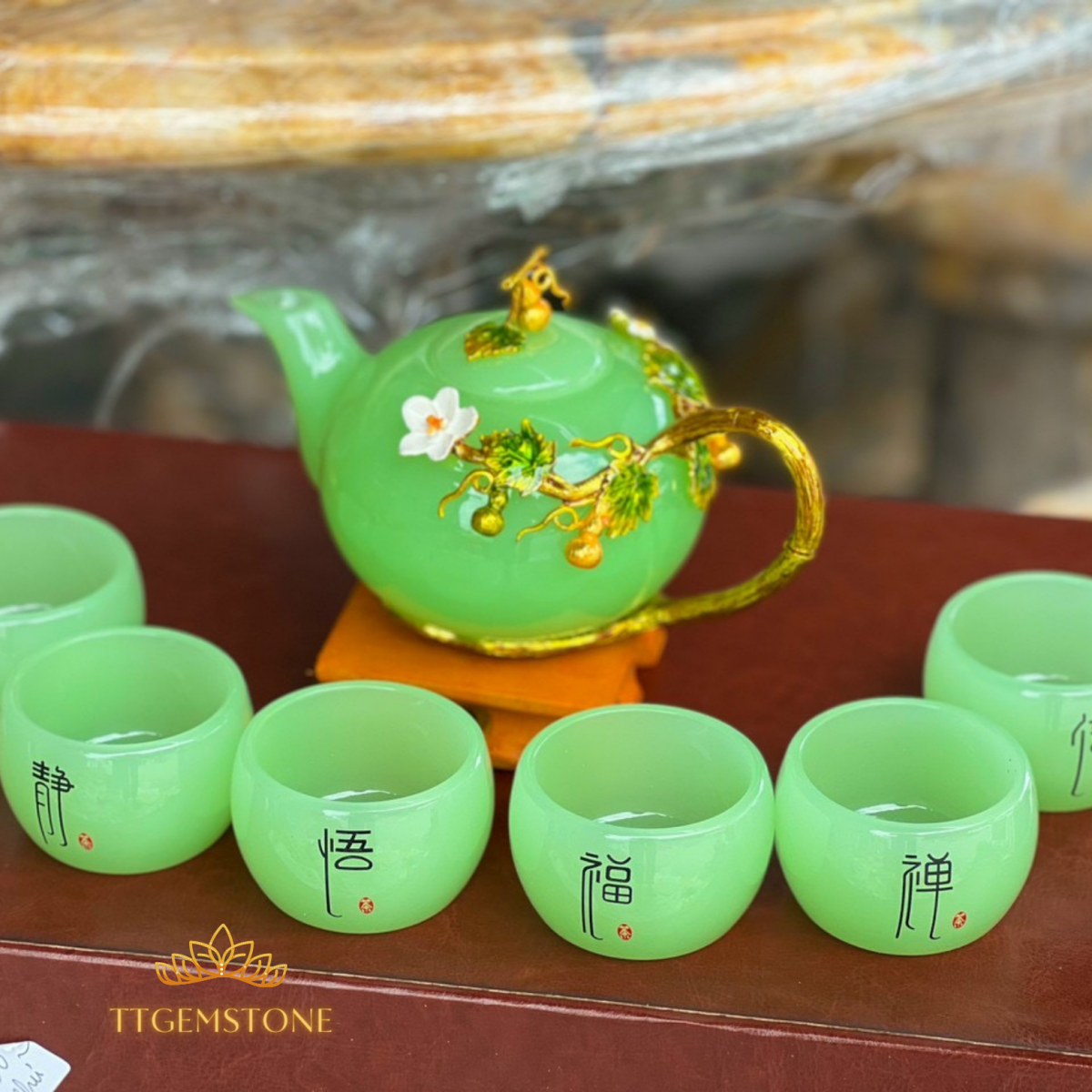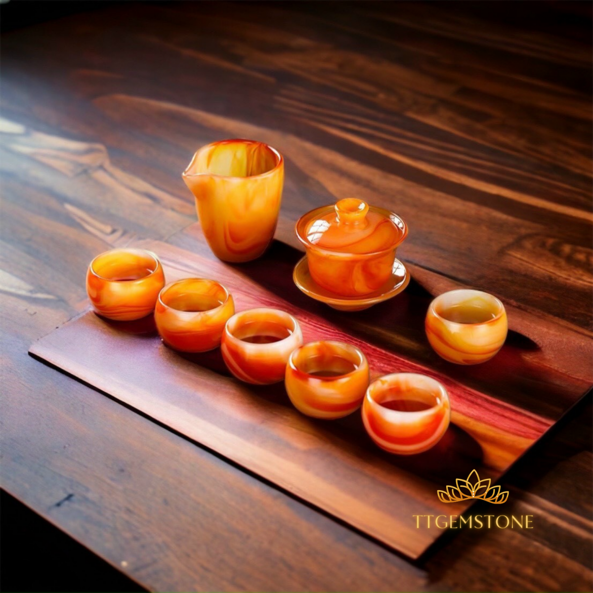 Hôm nay TTGEMSTONE muốn giới thiệu tới quý độc giả bộ ấm trà làm bằng đá mã não tự nhiên, gồm một bình trà và sáu ly trà là một biểu tượng cho sự sum vầy, đoàn tụ cho một gia đình ấm cúng, hòa thuận, hạnh phúc.