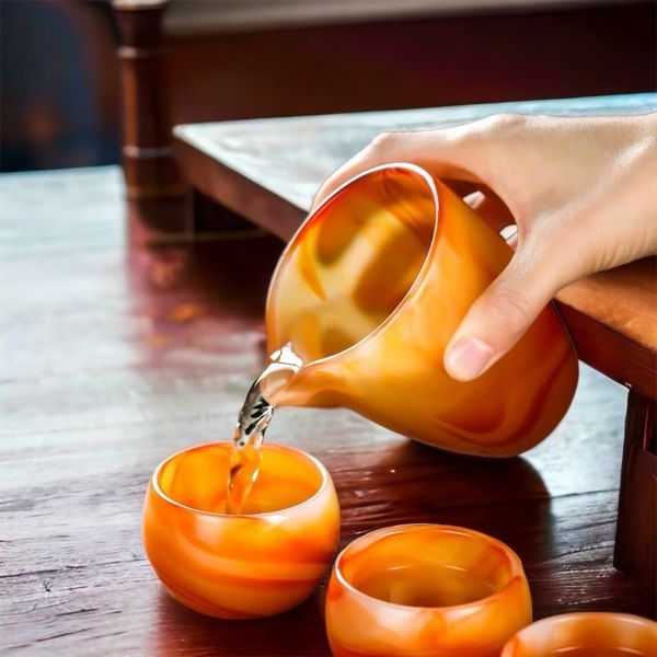 Bộ ấm trà đá mã não đỏ