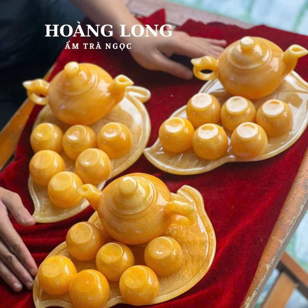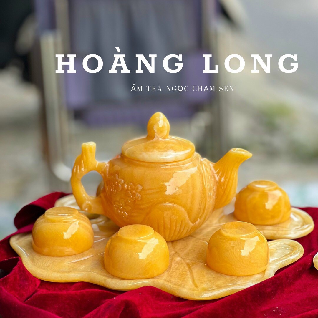 Đá Ngọc Hoàng Long là loại đá có độ cứng tương đối tốt trong điều kiện tự nhiên có màu sắc chính là màu vàng. Bởi đặc tính có độ trong suốt cao và nhiều màu sắc nên thường được sử dụng làm vật phẩm trưng bày, trang sức phong thủy… Bộ ấm trà Ngọc Hoàng Long chủ yếu dùng để pha trà, trưng bày hoặc có thể làm quà tặng vô cùng sang trọng.