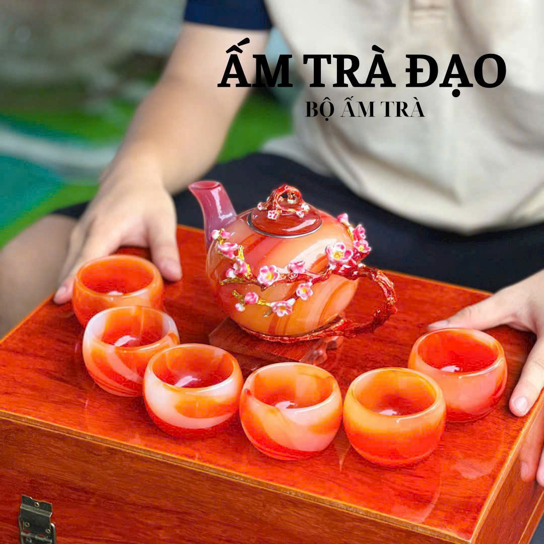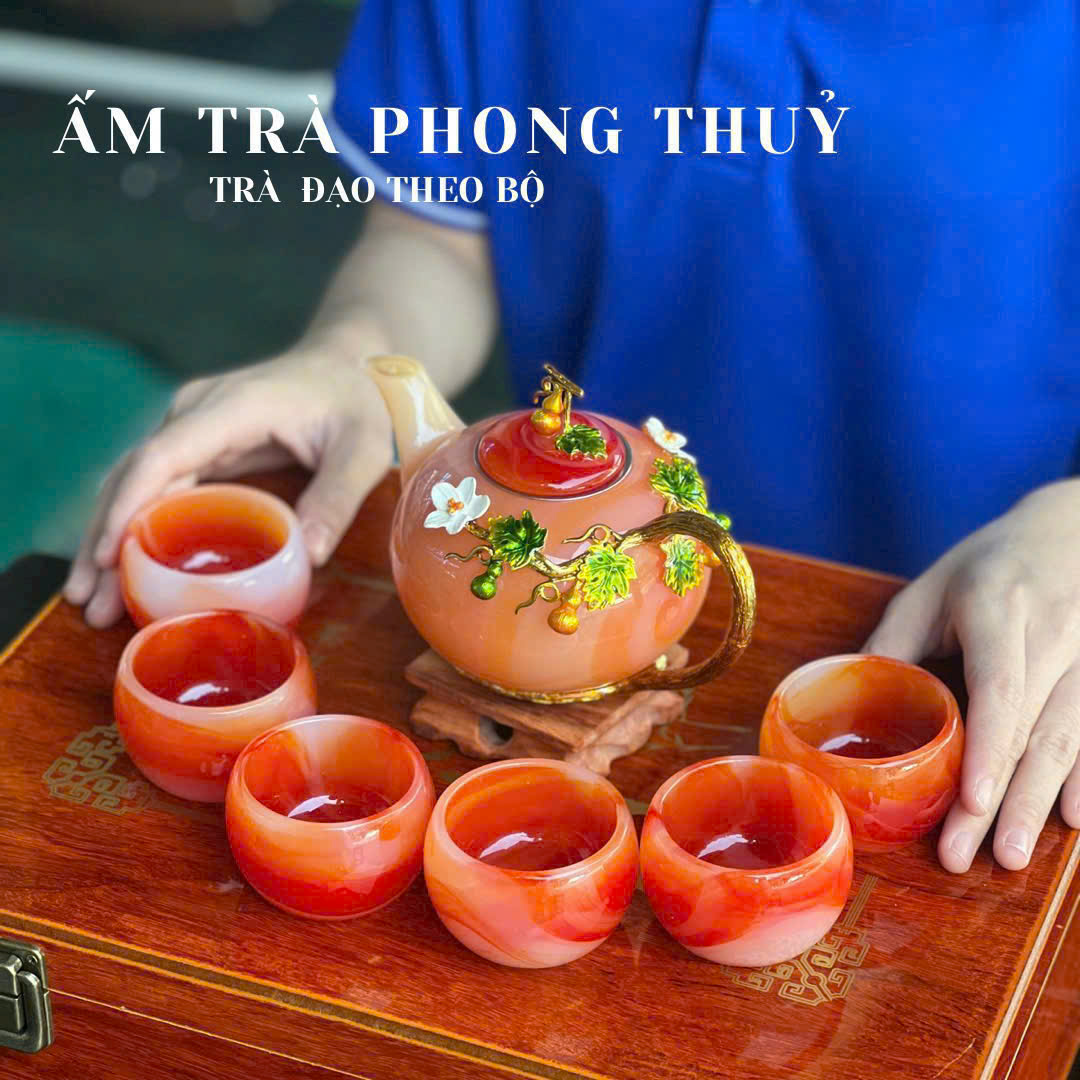 bộ ấm trà đá mã não đỏ biểu tượng của sự may mắn vui vẻ