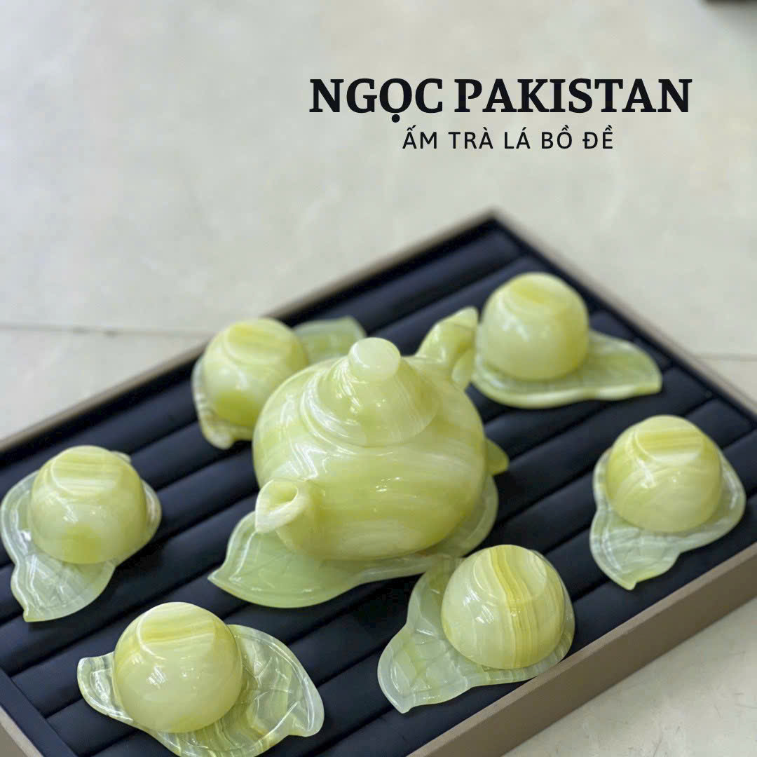 BỘ ẤM TRÀ LÁ BỒ ĐỀ ĐÁ NGỌC PHAKISTAN TỰ NHIÊN VỪA SỬ DỤNG VÀ TRƯNG BÀY TRANG TRÍ CHO KHÔNG GIAN NHÀ BẠN . QUÀ TẶNG Ý NGHĨA