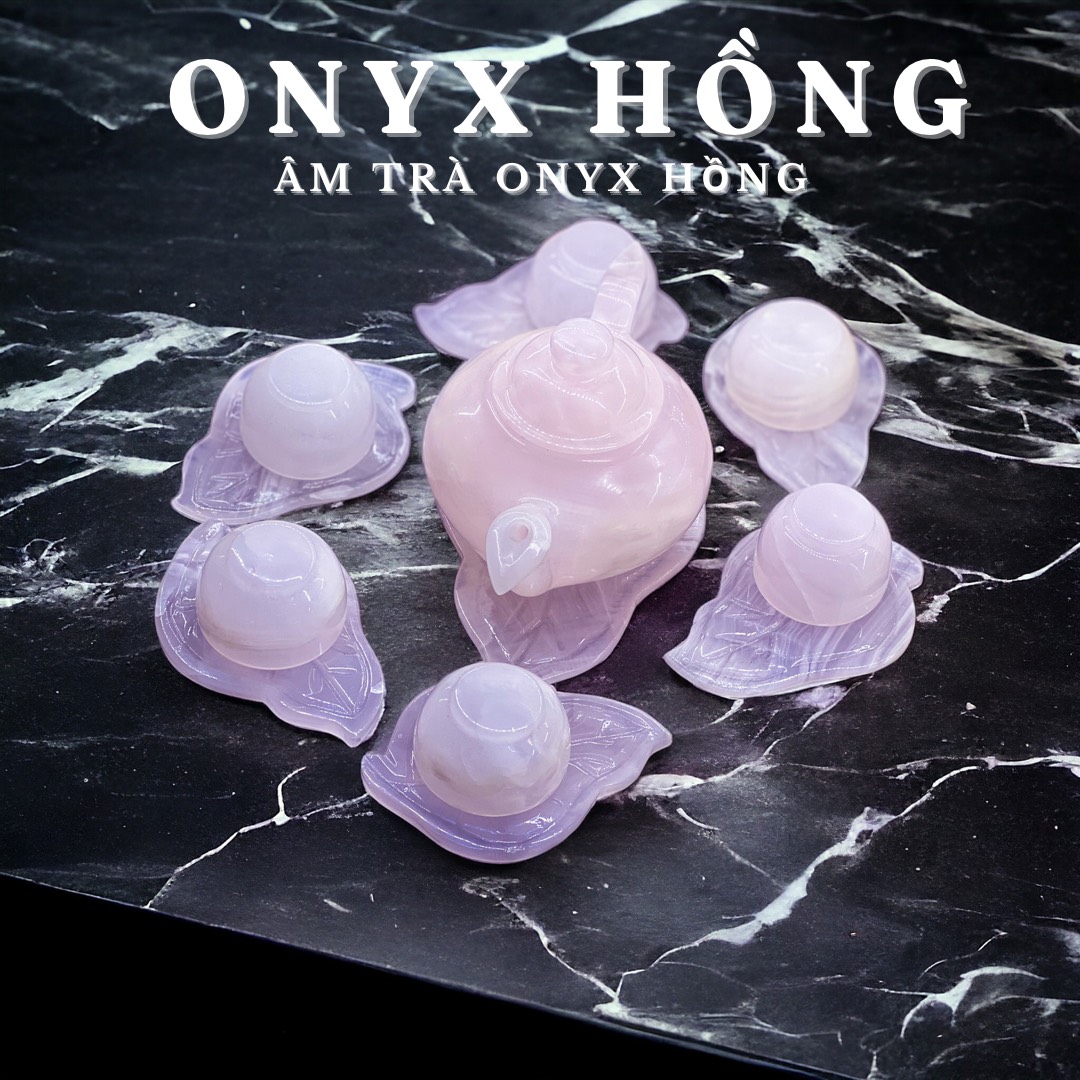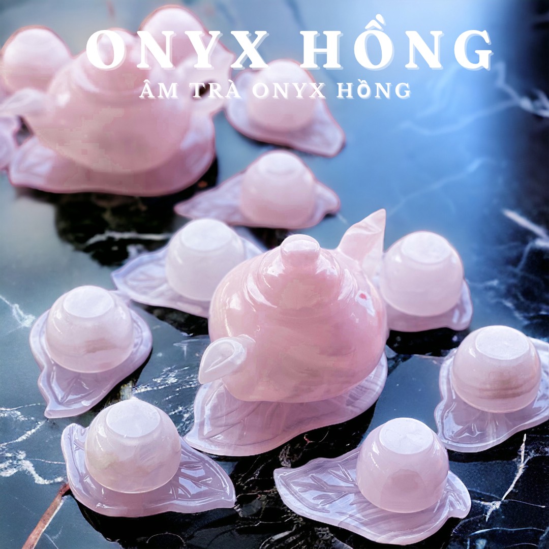 bộ ấm trà thạch anh hồng tự nhiên nguyên khối