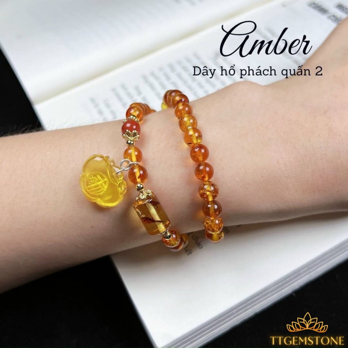 - Chiếc vòng tay Hổ Phách mang vẻ đẹp độc đáo, được sử dụng để chế tác thành những món đồ trang sức bắt mắt. Đeo trang sức hoặc mang hổ phách theo bên người sẽ giúp bạn giữ được nguồn năng lượng tích cực, gặp nhiều may mắn và chữa lành cơ thể.