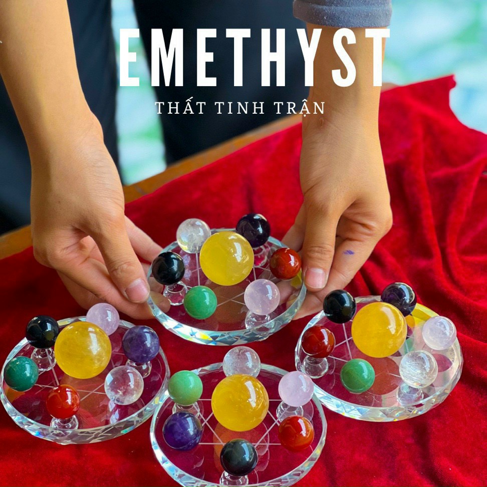 Bộ Thất Tinh Thạch Anh Đa Sắc Nhỏ là một pháp khí phong thủy với 6 viên đá được xếp trên một trận đồ bao quanh 1 viên đá lớn hơn tượng trưng cho ngôi sao David quyền năng – ngôi sao có 6 đỉnh nhọn là sự kết hợp vận dụng các yếu tố hình học sẽ tạo nên cũng như khuếch tán những năng lượng tốt, điều hòa dòng khí, tạo sự hòa thuận, đoàn kết và khả năng bảo hộ chủ nhân. Hãy đến với nhà TTGEMSTONE để sở hữu bộ thất tinh gồm 7 quả cầu đá thiên nhiên. Có giá trị năng lượng tốt lành, kích hoạt phong thủy công danh, tài lộc và sức khỏe cho người sở hữu