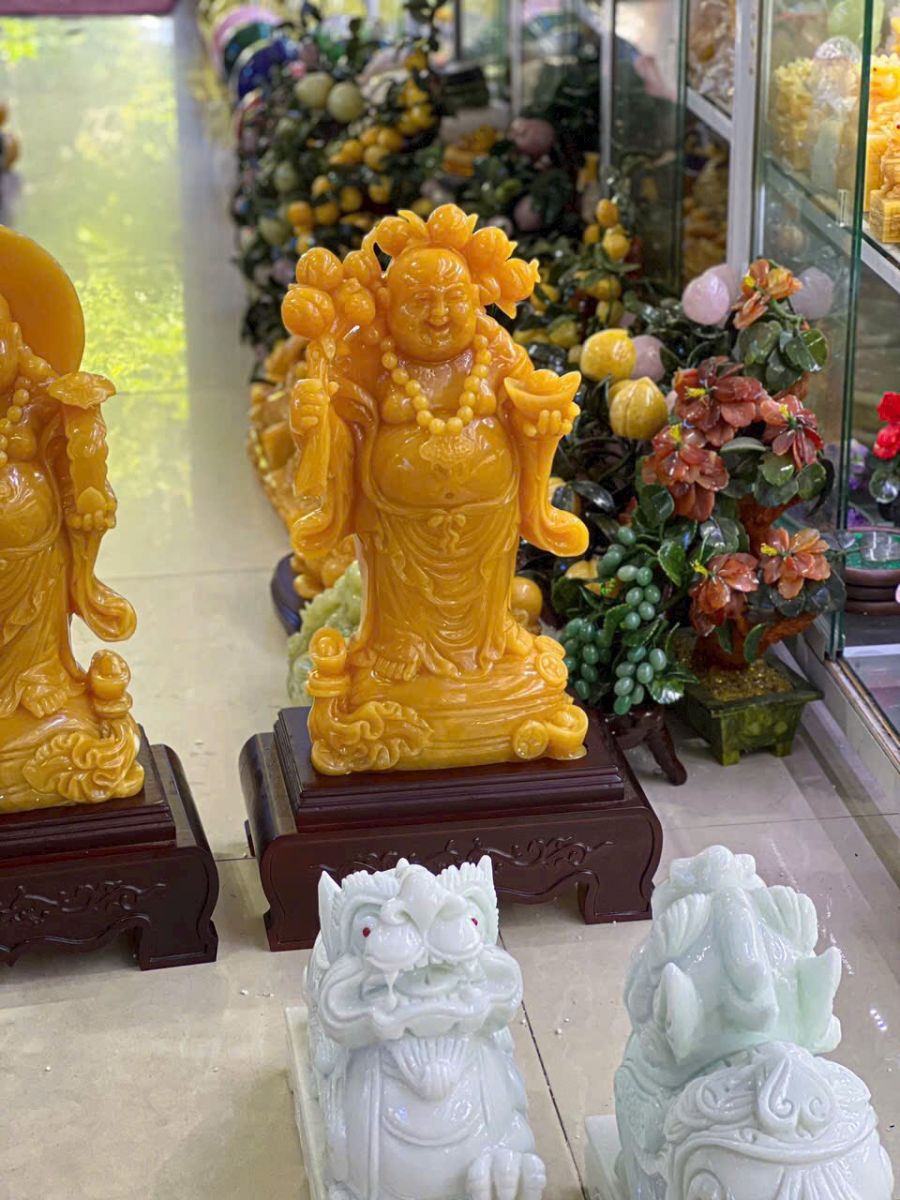 Ngọc Hoàng Long là một loại ngọc quý có màu vàng, hồng là chủ đạo. Ngoài ra còn có một số màu pha trộn giữa ba màu vàng – trắng – đỏ. Vì thế trong phong thủy, Tượng Phật Di lặc mang vượng khí, tài vận cho chủ nhân rất lớn.