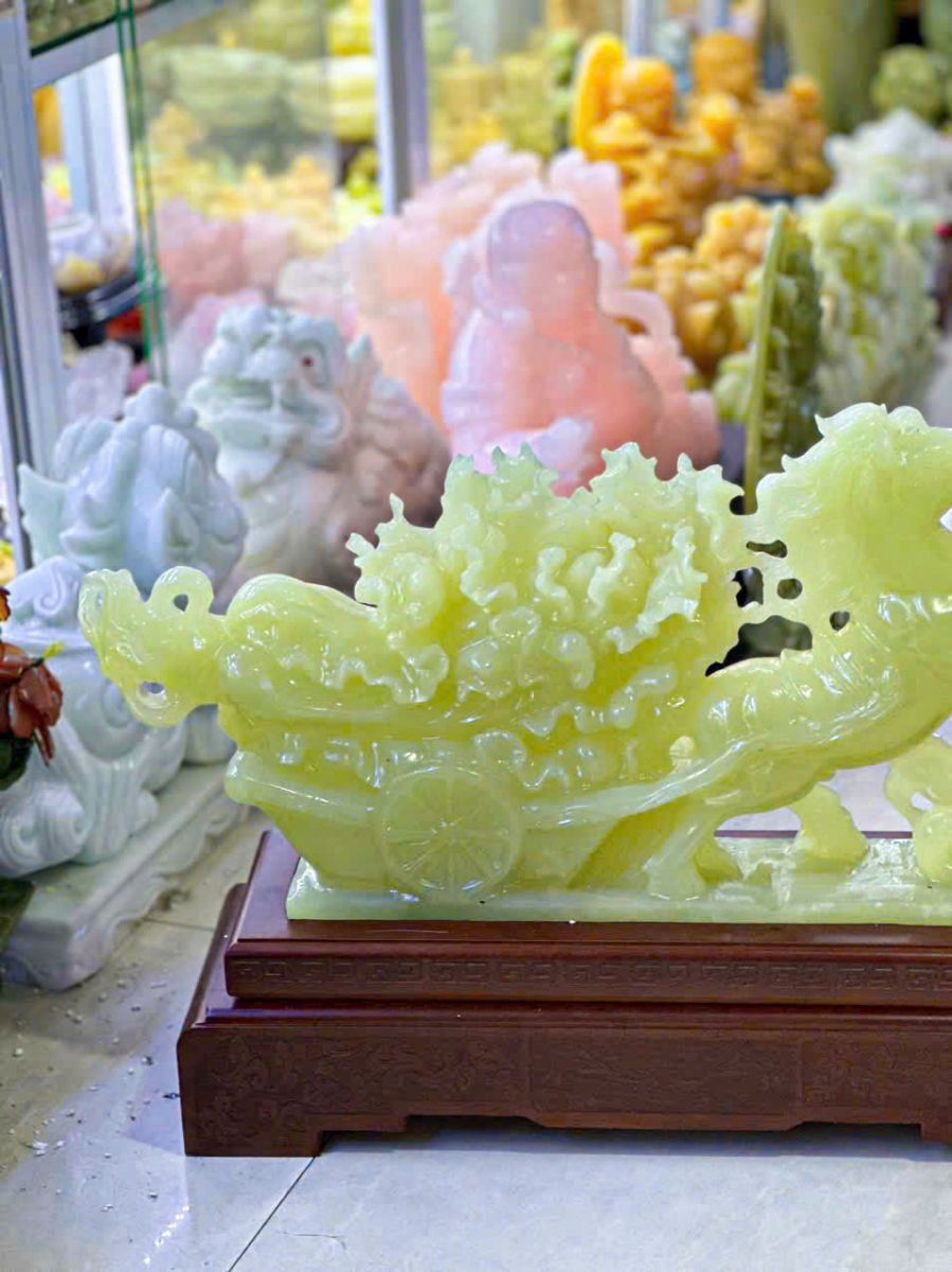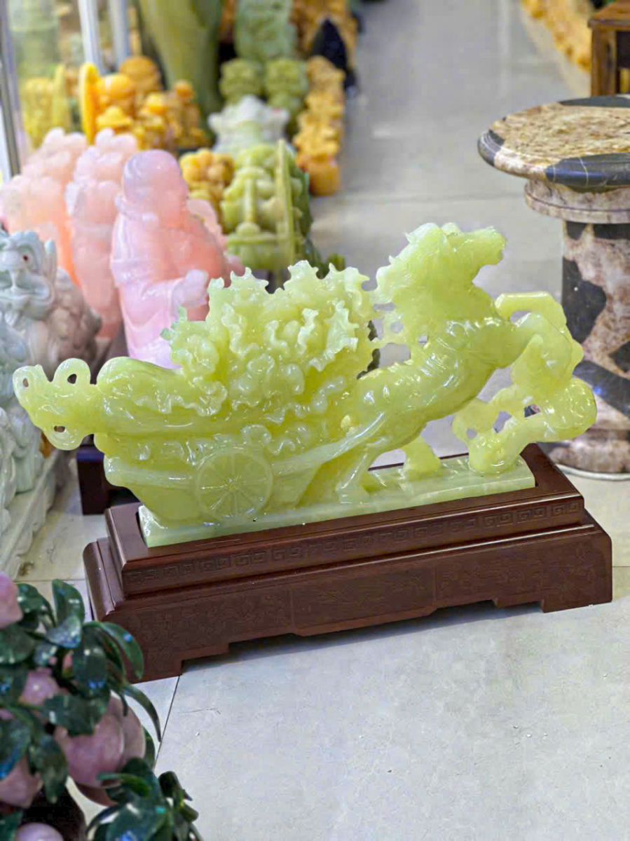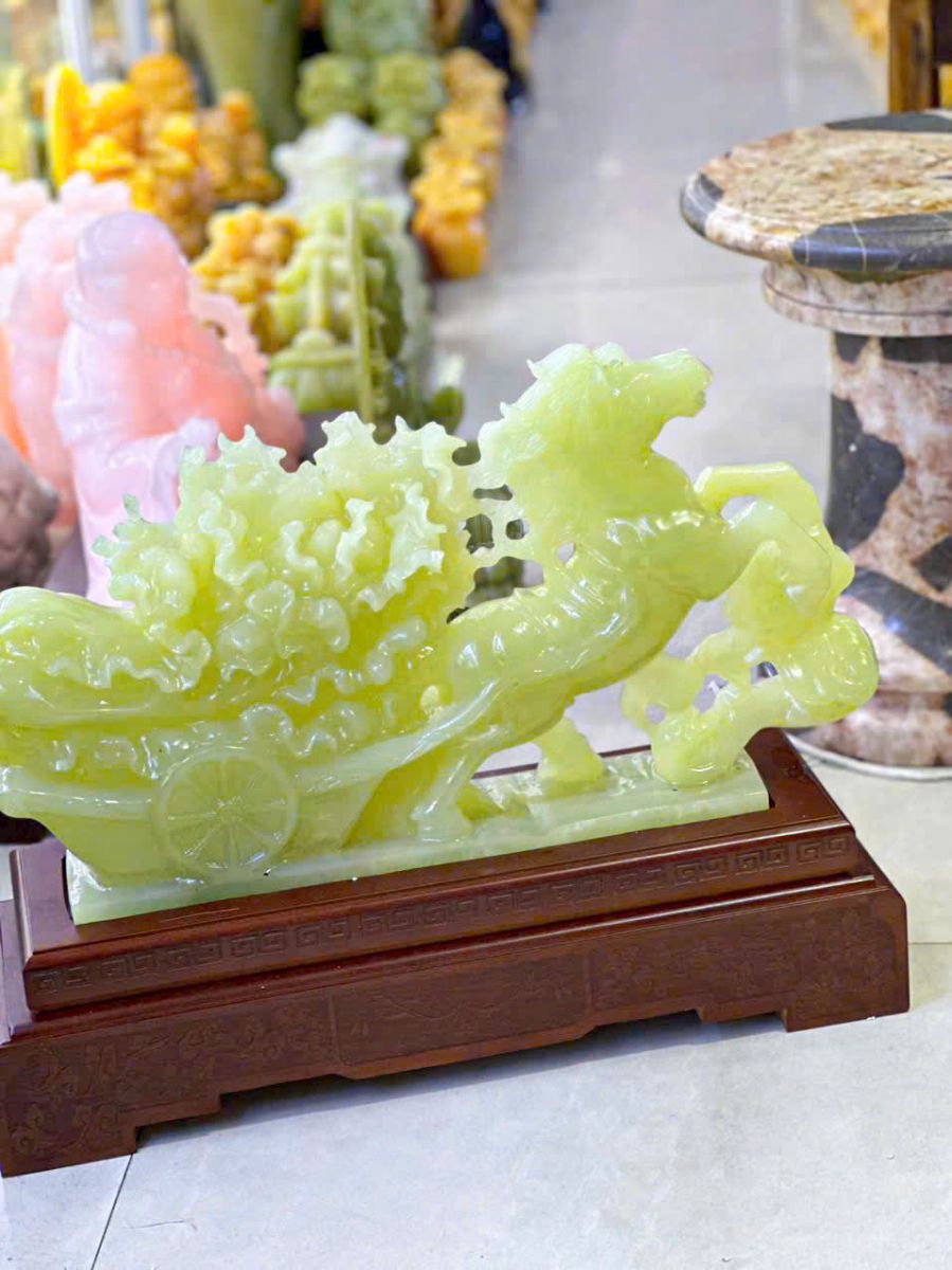 Trong nghệ thuật điêu khắc đá mỹ nghệ cao cấp, những tác phẩm mang biểu tượng phong thủy luôn được xem là linh hồn của không gian sống. Nổi bật trong số đó là bức cảnh Ngựa Kéo Bắp Cải bằng đá ngọc Pakistan xanh tự nhiên, một tuyệt phẩm hội tụ tinh hoa của thiên nhiên và bàn tay tài hoa của nghệ nhân Việt Nam.