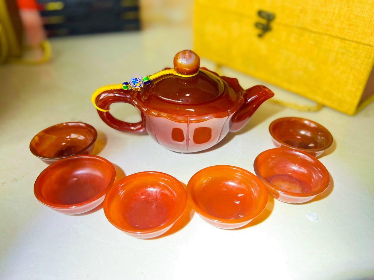 - Ngoài ra bộ ấm trà đá ngọc mã não đỏ vip còn là vật phẩm trang trí sang trọng cho căn nhà của bạn. Hơn nữa phong thủy độc đáo giúp xua đuổi tà khí và mang lại bình an, may mắn cho các thành viên trong gia đình.