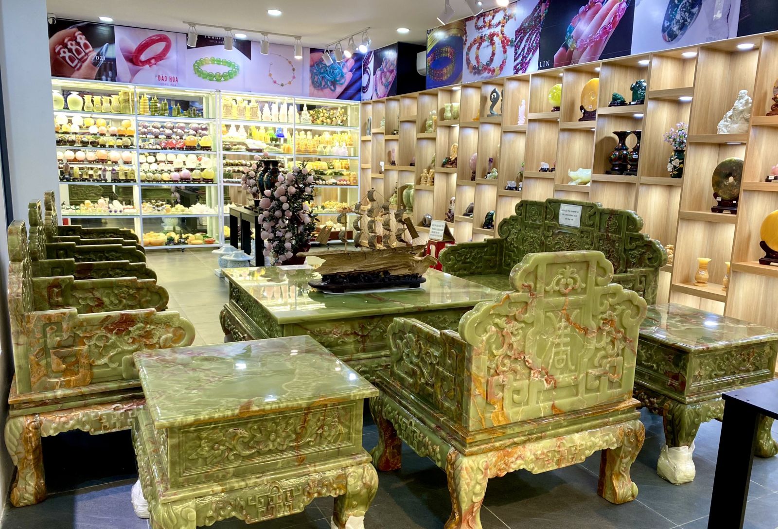 CẬN CẢNH BỘ BÀN GHẾ ĐÁ NGỌC PAKISTAN ĐỘC NHẤT VÔ NHỊ TẠI VIỆT NAM