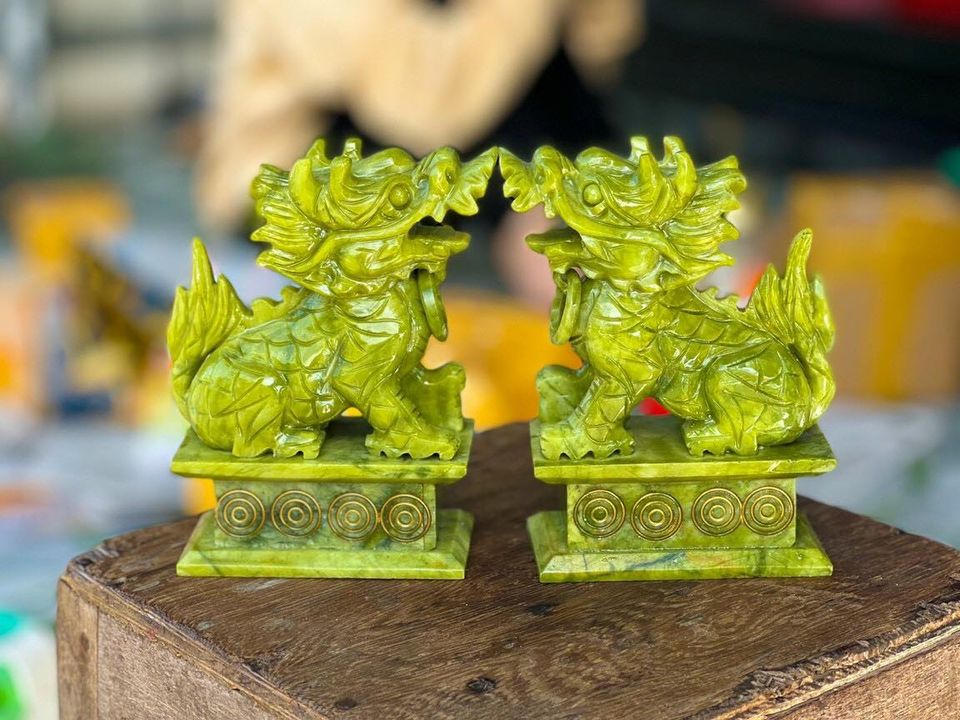 CẶP KỲ LÂN ĐÁ NGỌC SERPENTINE - HÌNH DÁNG VÀ MÀU SẮC ẤN TƯỢNG