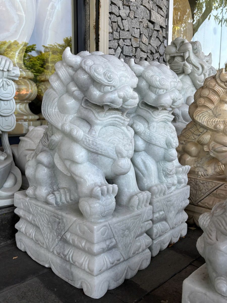 Trong nghệ thuật kiến trúc và trang trí ngoại thất, cặp kỳ lân đá trắng nguyên khối luôn là lựa chọn hàng đầu của những gia chủ yêu thích sự sang trọng, bền vững và giá trị thẩm mỹ lâu dài. Không chỉ đơn thuần là vật trang trí, kỳ lân còn đại diện cho quyền uy, sự bảo hộ và đẳng cấp của gia chủ, đặc biệt phù hợp với biệt thự, nhà thờ họ, khu nghỉ dưỡng hay công trình tâm linh.