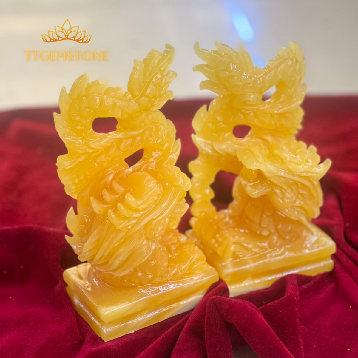 Ngọc hoàng long là loại đá quý với màu vàng chủ đạo. Loại đá này chứa đựng rất nhiều thông điệp trong phong thủy và tâm linh của con người. Nó được xem như một bảo vật có sức mạnh nhiệm màu, đá Ngọc Hoàng Long là một chất liệu quá hoàn hảo để chế tác nên các vật phẩm phong thủy hoặc trang sức phong thủy nhằm mang lại phước lành cho chủ nhân sở hữu. Hãy tham khảo bài viết của TTGEMSTONE về cặp tượng rồng đứng bằng đá ngọc hoàng long nhé!
