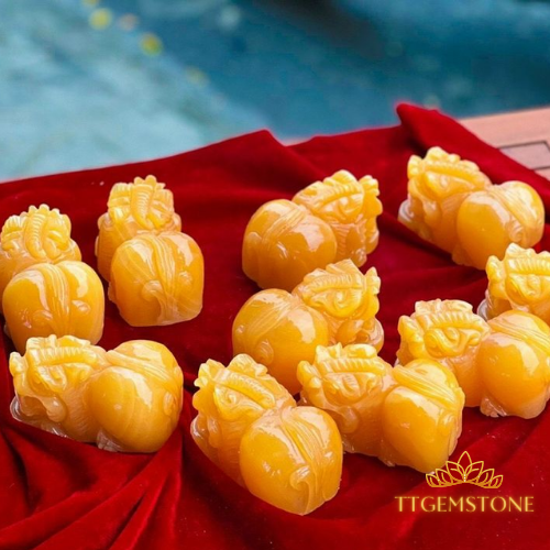 Màu vàng của ngọc Hoàng Long có ý nghĩa chiêu tài lộc, công danh thuận lợi và trừ tà ma nên sử dụng tỳ hưu ư lại càng ăn nên làm ra, thuận lợi đủ đường. Đá phong thủy ngọc Hoàng Long màu vàng – Mệnh thổ giúp con người tìm ra cái gốc của cuộc sống, mệnh Kim giúp tạo thêm động lực để chủ nhân của nó có thể vượt qua khó khăn, trắc trở.