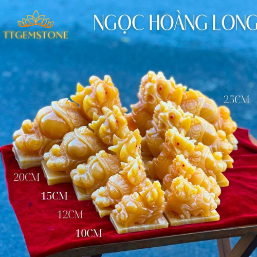 Tỳ hưu đá Ngọc Hoàng Long là linh vật bằng ngọc quý có màu vàng là chủ đạo. Trong phong thủy, ngọc hoàng long phù hợp và mang vượng khí, tài vận cho người mệnh Kim và Thổ.