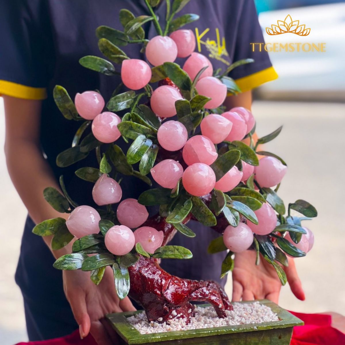 Trong phong thủy, mỗi một vật phẩm phong thủy khác nhau đều sẽ mang ý nghĩa khác nhau. Các nghệ nhân tài ba thường tạo ra các sản phẩm tinh xảo như cây tài lộc, linh vật tỳ hưu, thiềm thừ hay quả cầu đá phong thủy để tăng cường năng lượng và mang đến may mắn cho gia chủ. Có một sản phẩm độc đáo nổi bật trong danh sách này đó chính là Cây đào tiên thạch anh hồng của TTGEMSTONE. Được làm từ đá thạch anh tự nhiên, sản phẩm này không chỉ bền, đẹp, trang trí trong nhà mà còn mang lại nhiều lợi ích về sức khỏe và năng lượng cho gia chủ và gia đình. Mời bạn tìm hiểu thêm về Cây đào tiên thạch anh hồng để đón nhận những điều bất ngờ từ phong thuỷ cùng TTGEMSTONE nhé!