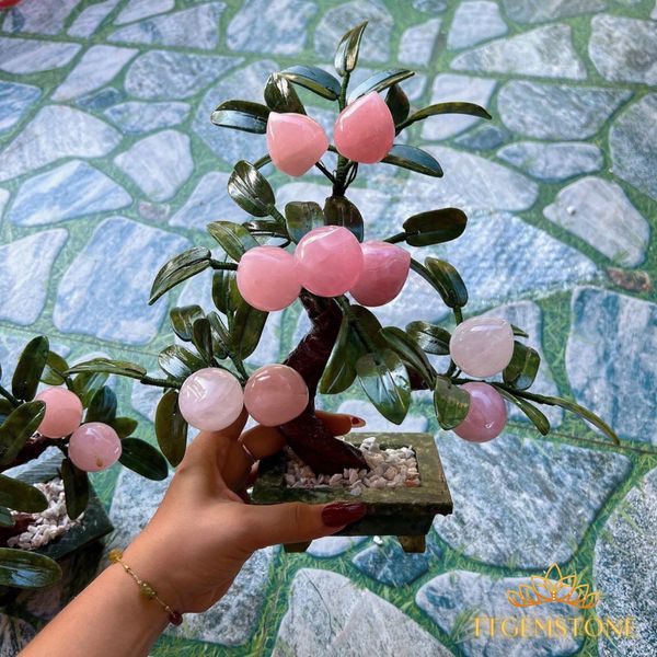 Cây đào tiên thạch anh hồng với sự kết hợp từ đá thạch anh đã được minh chứng là dòng đá có năng lượng cao và ngọc serpentine tượng trưng cho quyền quý là một vật phẩm tượng trưng cho Phúc - Lộc - Thọ, mang lại may mắn, tài lộc và nhân duyên.