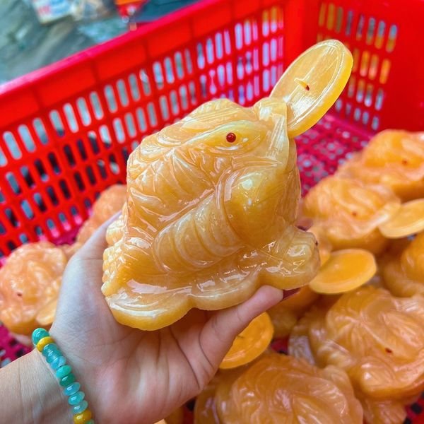 Ngọc Hoàng Long (Yellow Calcite) từ lâu đã nổi danh là dòng đá mang màu sắc của quyền lực và sự giàu sang. Khi được tạc hình Thiềm Thừ, nó tạo nên một luồng năng lượng cực kỳ mạnh mẽ.