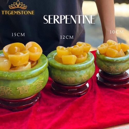 Bát tụ bảo đá ngọc serpentine tự nhiên
