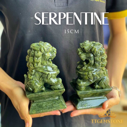 Cặp kỳ lân đá ngọc serpentine tự nhiên