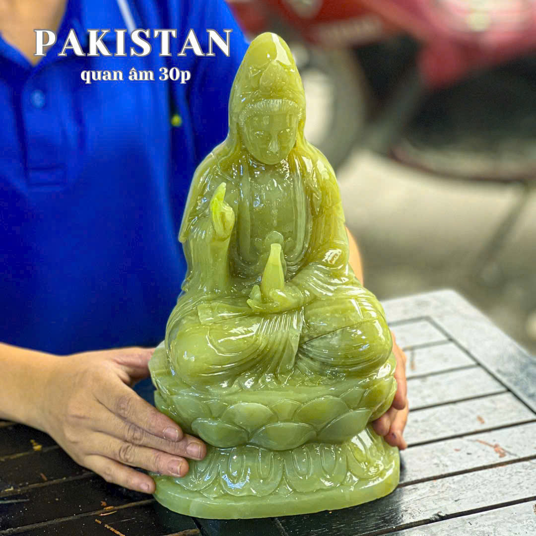 Trong thế giới đá quý phong thủy, đá Pakistan (Onyx xanh) luôn được xem là hiện thân của sự quý tộc và năng lượng huyền bí. Khi chất liệu thượng hạng này kết hợp với hình tượng Phật Bà Quan Thế Âm, chúng ta không chỉ có một vật phẩm tâm linh thông thường, mà là một tuyệt tác nghệ thuật xuyên sáng đầy mê hoặc. Mỗi bức tượng Quan Âm đá Pakistan là một hành trình hội tụ giữa vẻ đẹp xa hoa và chiều sâu của lòng từ bi vô lượng.