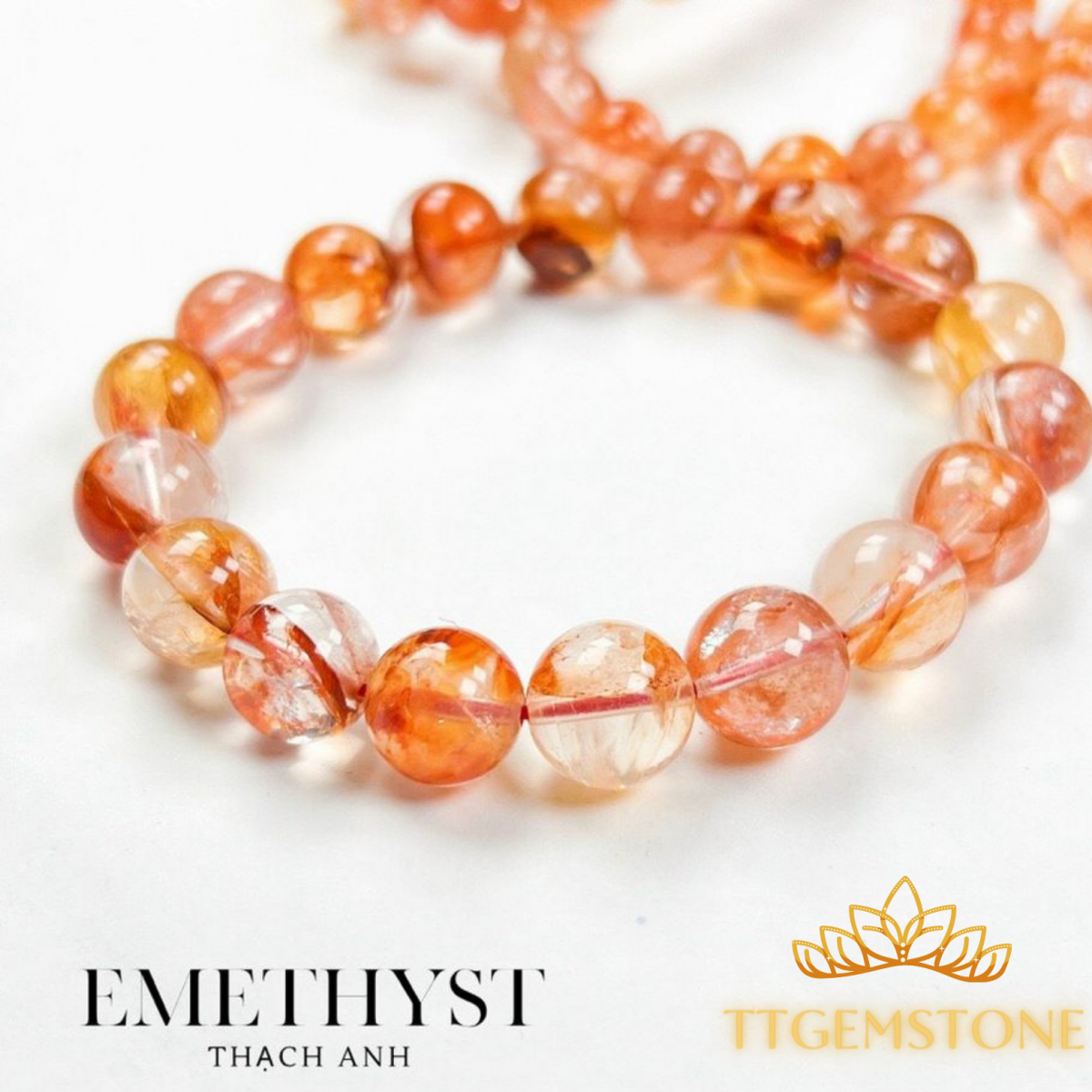 Vòng tay đá thạch anh ưu linh cam