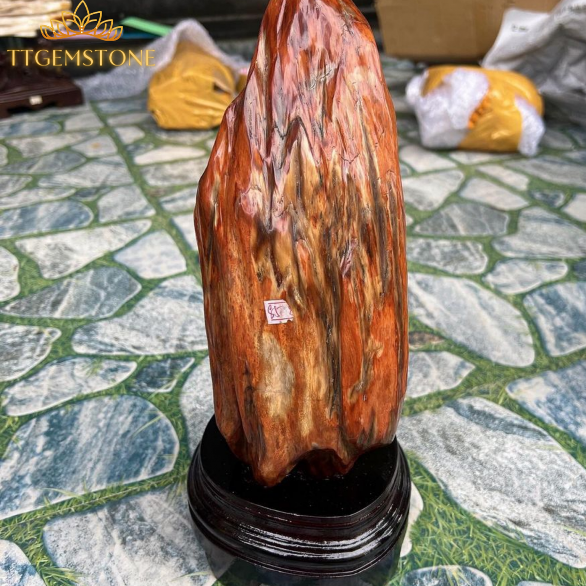 Gỗ hoá thạch đỏ kèm đế gỗ