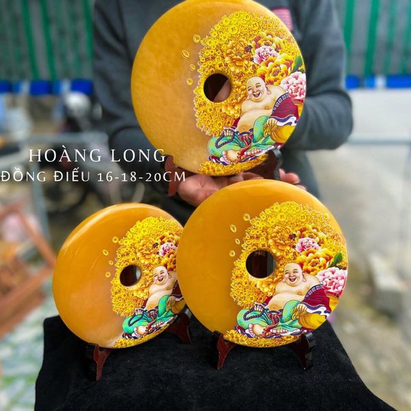 Đồng Điều Đá Ngọc Hoàng Long giống như một miếng ngọc, có dạng hình tròn, chính giữa cũng được đục một cái lỗ tròn, dùng để xỏ dây và đeo lên cổ, hoặc là treo ở vị trí gần với ông Thần Tài, mục đích là cầu xin sự may mắn về tiền tài và công việc.