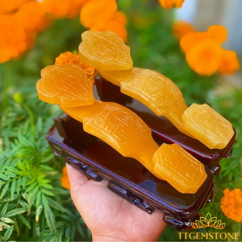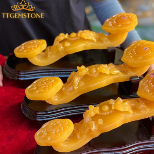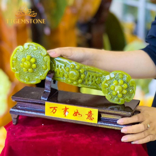 Gậy như ý ngọc hoàng long được làm từ đá ngọc hoàng long tinh xảo với màu vàng tượng trưng cho tiền tài, may mắn. Đây là loại đá nằm sâu trong lòng đất hàng triệu năm, đã hút đủ mọi linh khí, dương khí, với nguồn năng lượng tốt lành cho gia chủ.