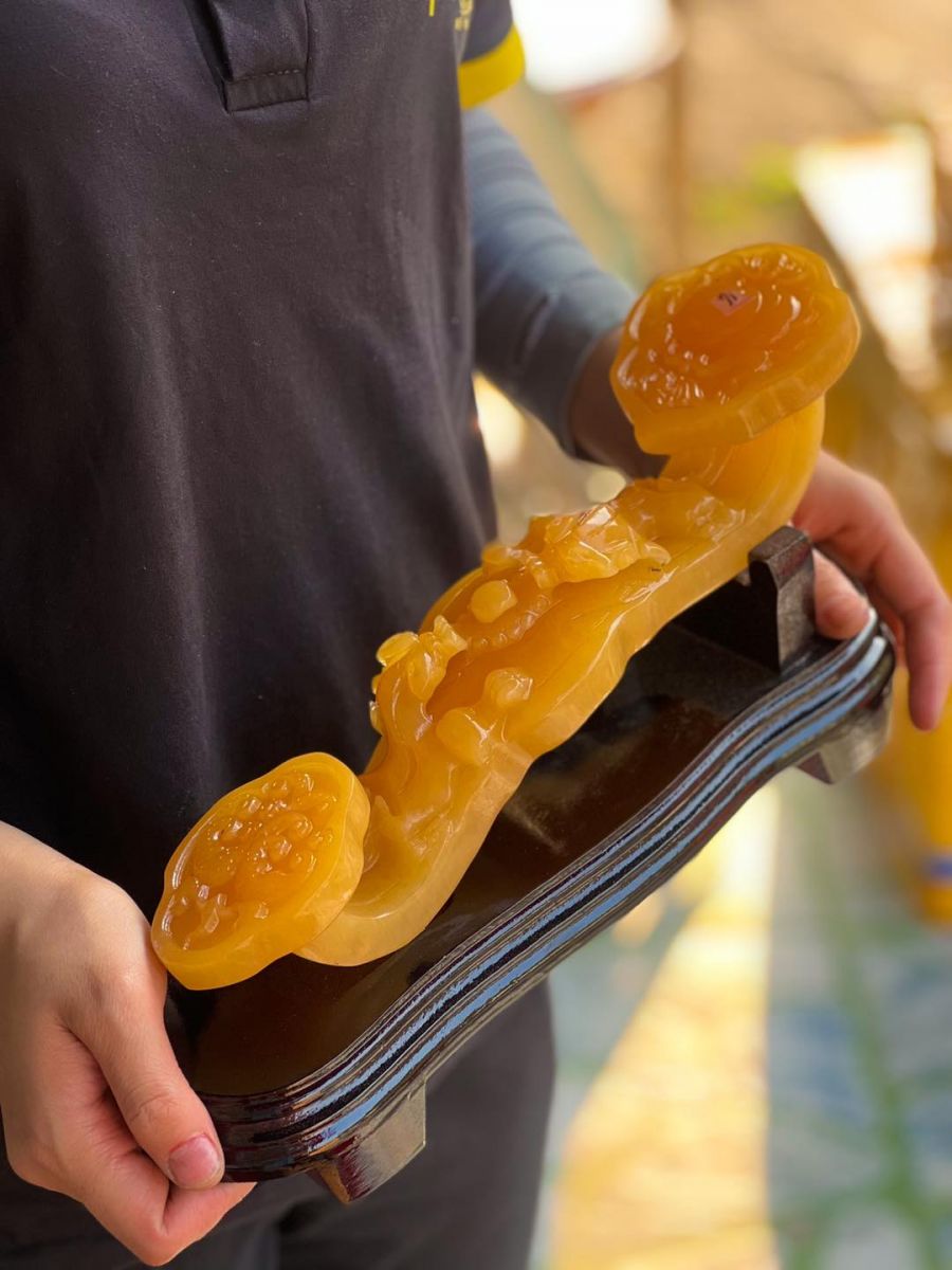 Gậy như ý đá ngọc hoàng long được chế tác từ vật liệu đá ngọc hoàng long là biểu tượng của quyền lực, địa vị, có khả năng đem lại nhiều tiền tài, may mắn, cho những người sở hữu. Nếu bạn đang tìm vật phẩm phong thủy để đặt trên bàn làm việc, phòng khách thì đây là gợi ý không thể bỏ qua.