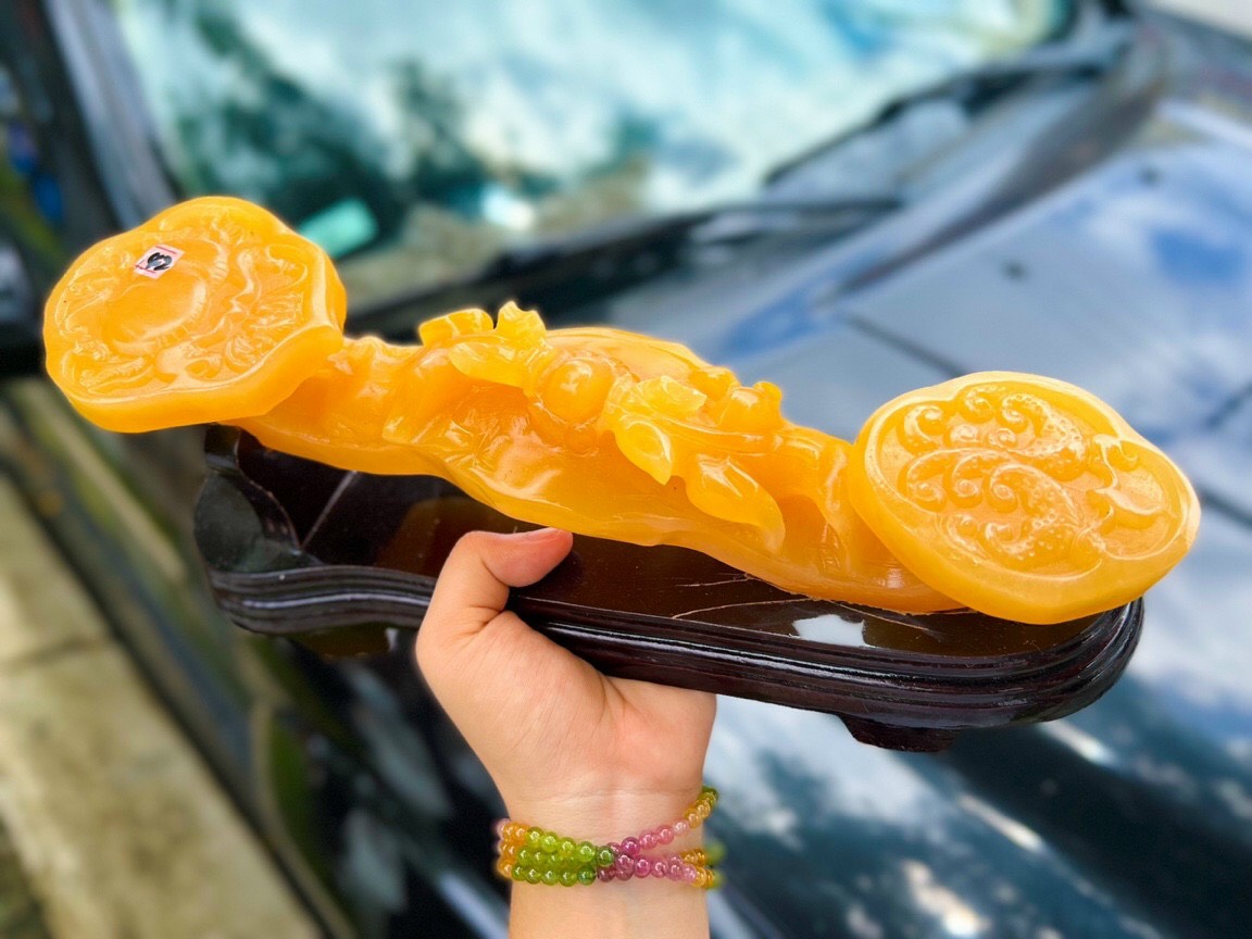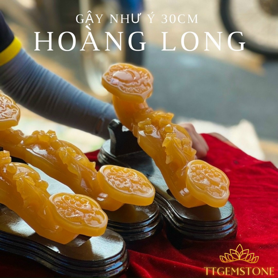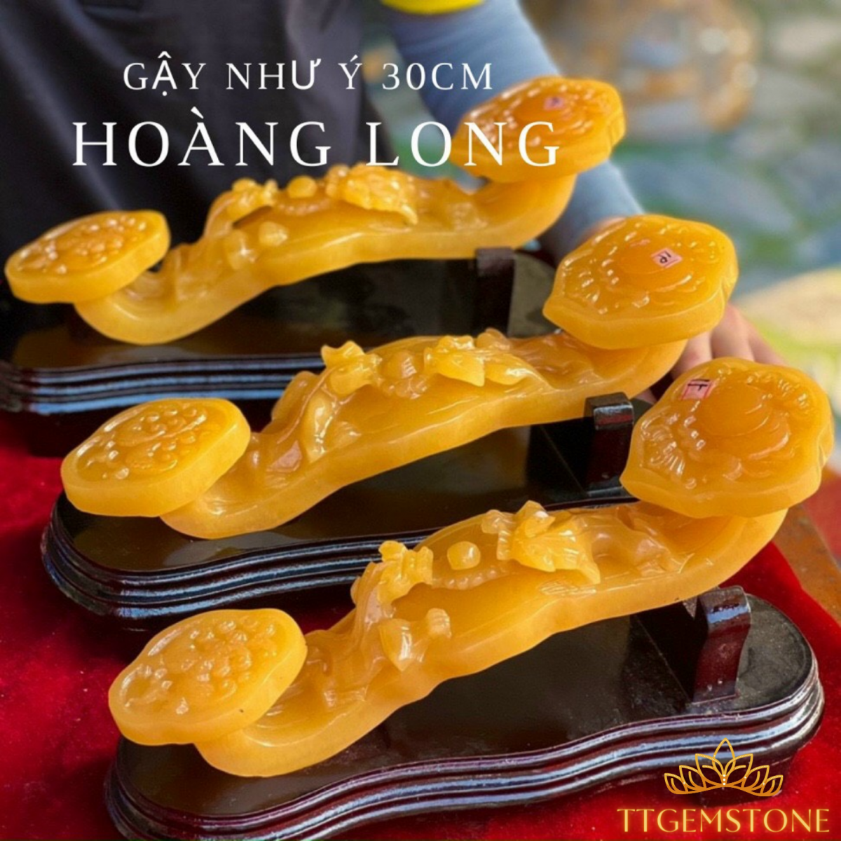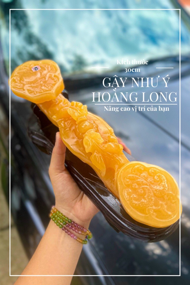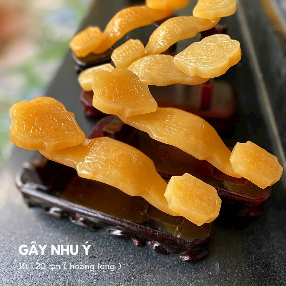 Gậy như ý ngọc hoàng long được làm từ đá ngọc hoàng long tinh xảo với màu vàng tượng trưng cho tiền tài, may mắn. Đây là loại đá nằm sâu trong lòng đất hàng triệu năm, đã hút đủ mọi linh khí, dương khí, với nguồn năng lượng tốt lành cho gia chủ.