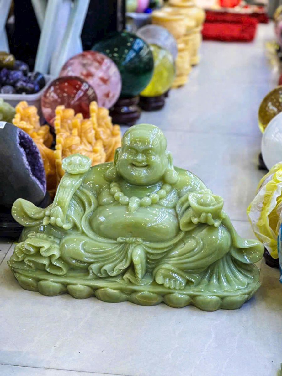 Không có hai tượng giống hệt nhau vì vân ngọc tự nhiên luôn khác biệt. Đây là lý do nhiều nhà sưu tầm chọn tượng Phật Di Lặc bằng đá ngọc nguyên khối để trưng bày hoặc làm quà tặng nghệ thuật cao cấp.