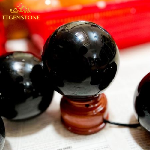 Quả cầu phong thủy mệnh Mộc từ đá Obsidian đen