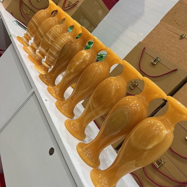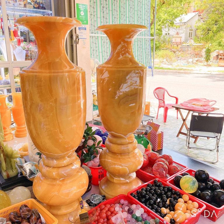 Với bộ lục bình ngọc Hoàng Long màu vàng cao quý, huyền bí mang ý nghĩa cao quý, thịnh vượng. Lục bình ngọc Hoàng Long được chế tác với đa dạng kích thước, ấn tượng nhất vẫn là các cặp lục bình cổ có kích thước lớn đặt tại không gian phòng khách. Theo quan niệm phong thủy, lục bình ngọc Hoàng Long càng lớn, năng lượng trong vật phẩm càng cao.