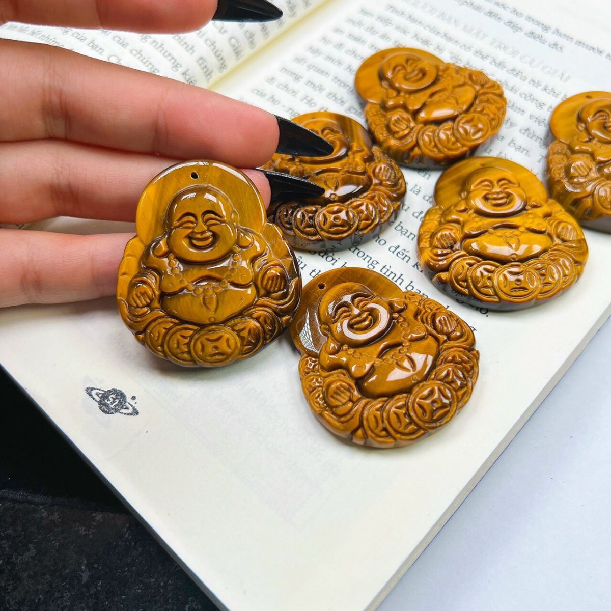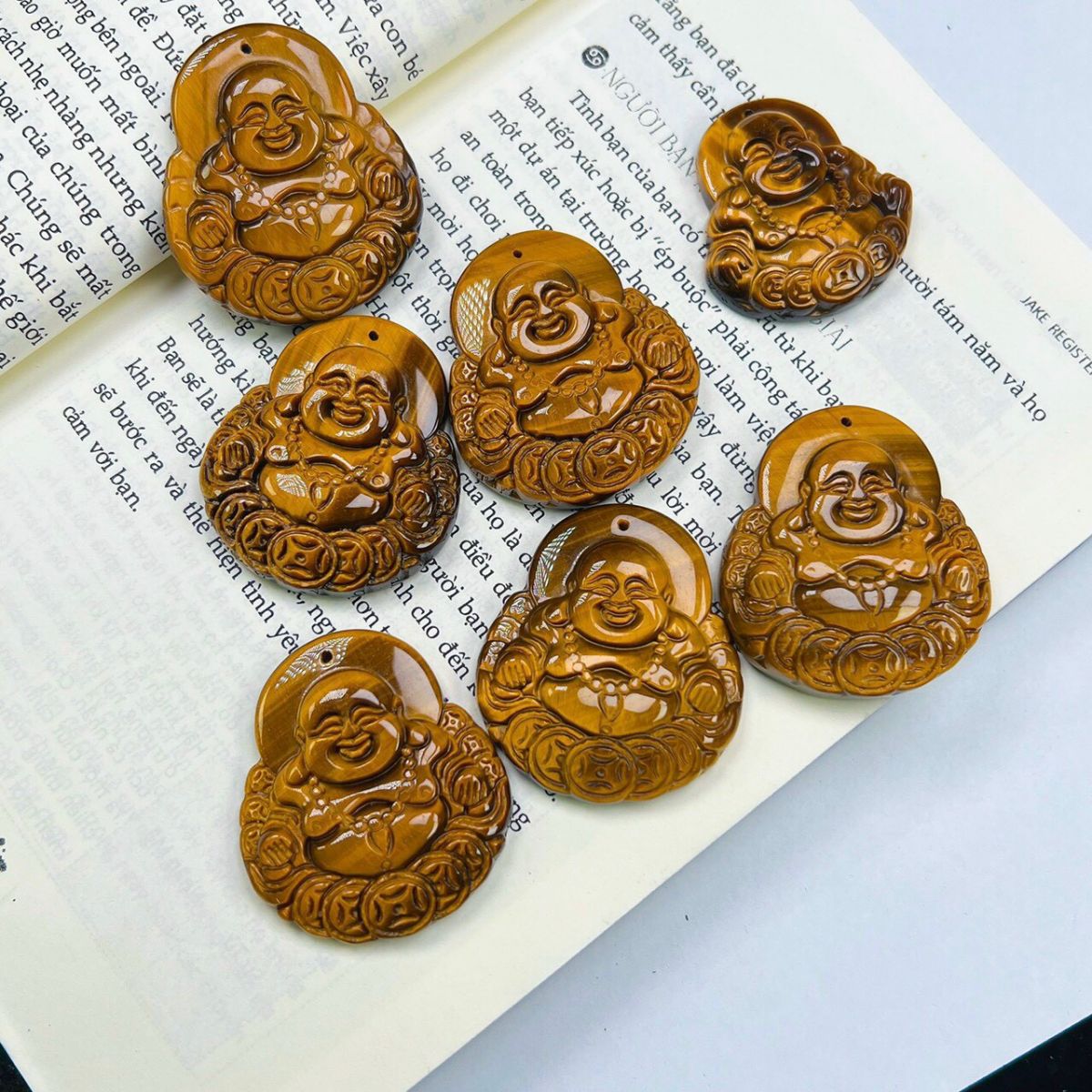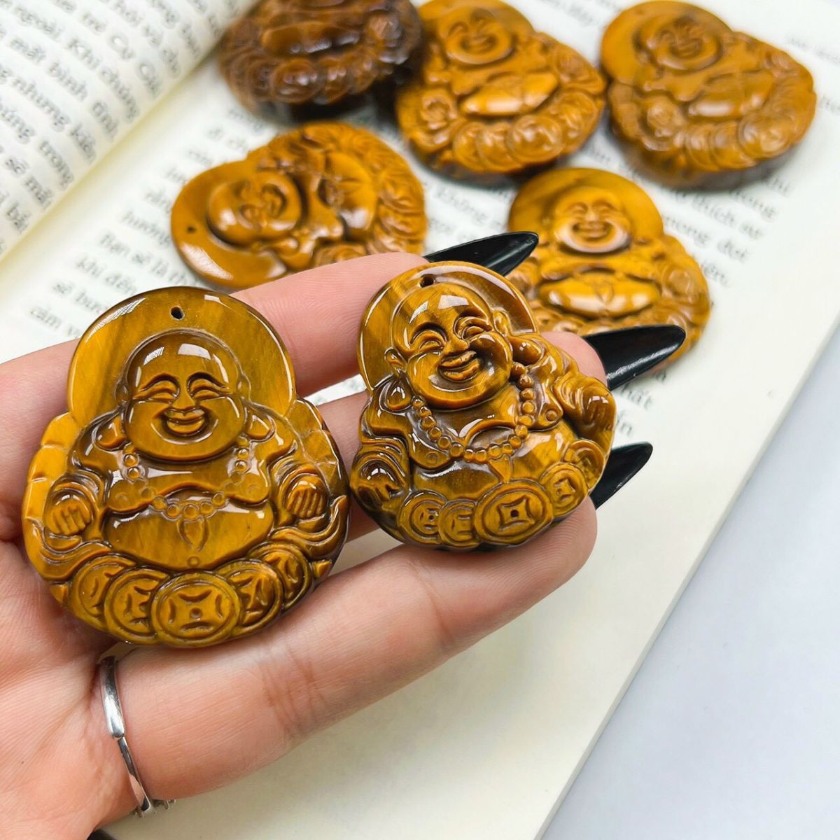Mặt dây chuyền phật di lặc đá mắt hổ mang lại may mắn bình an vui vẻ cho người đeo