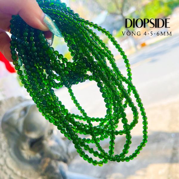 Thông thường Diopside ở phẩm chất này sẽ hay được tận dụng làm các mặt fancet đơn lẻ để bán với giá trị cao hơn nhưng Diopside vốn là *đặc sản* của TT nên tiệm muốn khách có được nhiều sự lựa chọn nhất có thể nên làm luôn chuỗi cho khách đeo tay nhé.