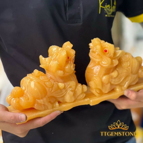 Cặp tỳ hưu đá ngọc hoàng long tự nhiên