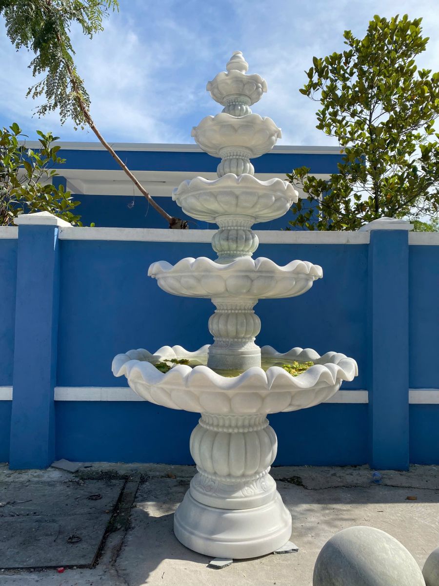 Những bình hoa bằng đá, hồ tiểu cảnh phong thủy, hay đài phun nước đá không chỉ mang tính nghệ thuật cao mà còn giúp thanh lọc năng lượng xấu, tạo cảm giác an yên cho ngôi nhà.